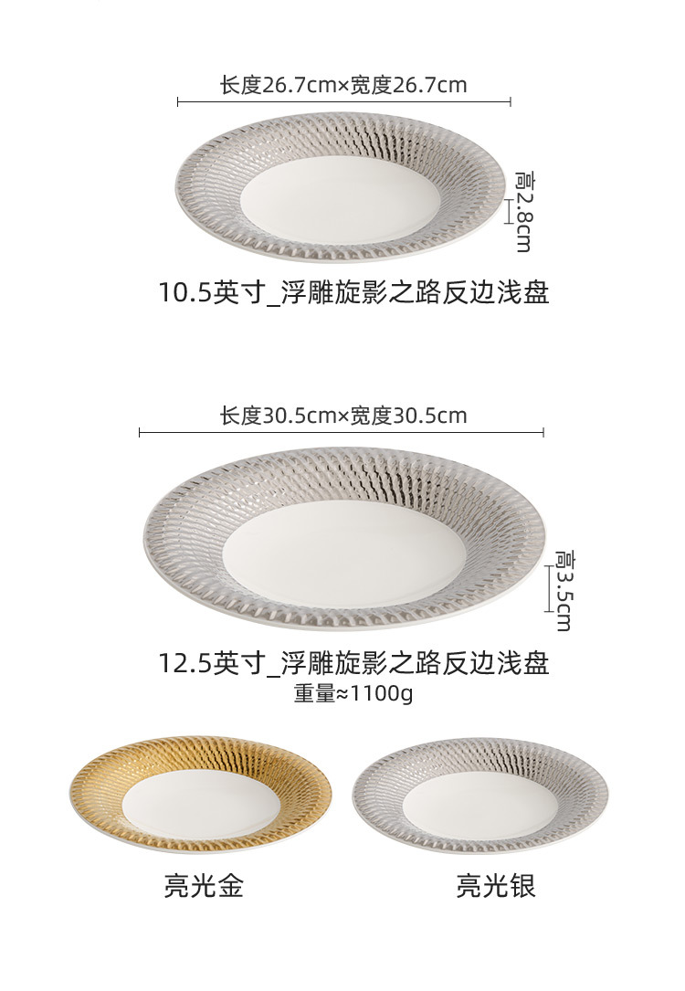 Đĩa gốm nổi, đĩa mì Ý, bộ đồ ăn khách sạn thương mại, đĩa canh, món cao cấp, nhẹ nhàng sang trọng, đĩa gia dụng
