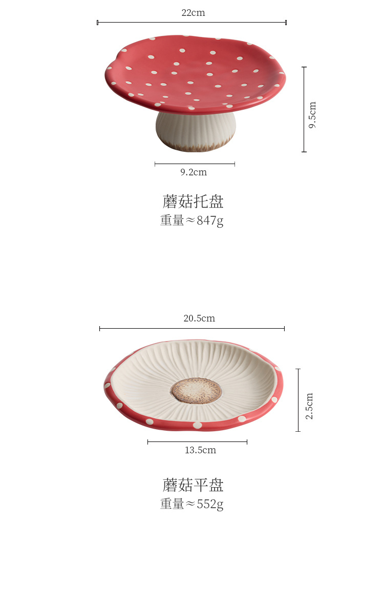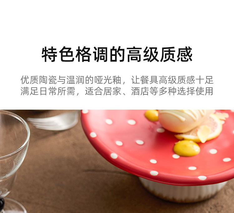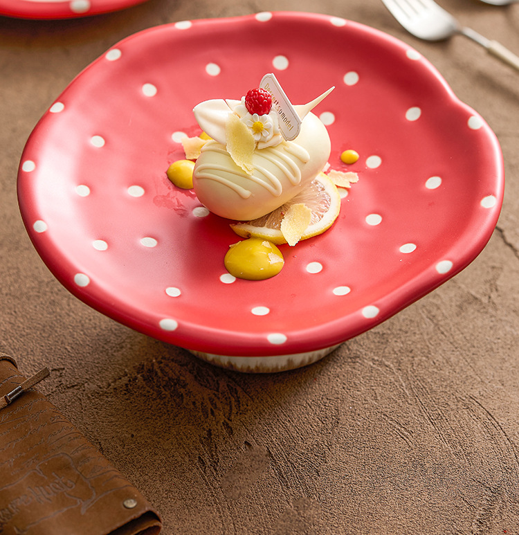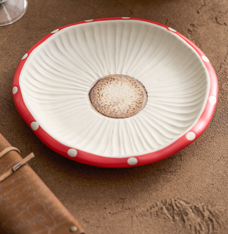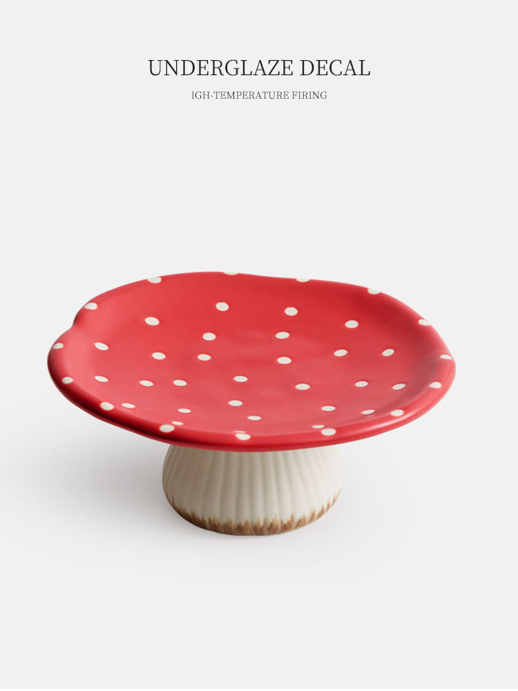 - Đĩa gốm sứ hình nấm đỏ dùng trong nhà, kiểu mới 2025, bộ đồ ăn cao cấp, khay đựng bánh ngọt trà chiều