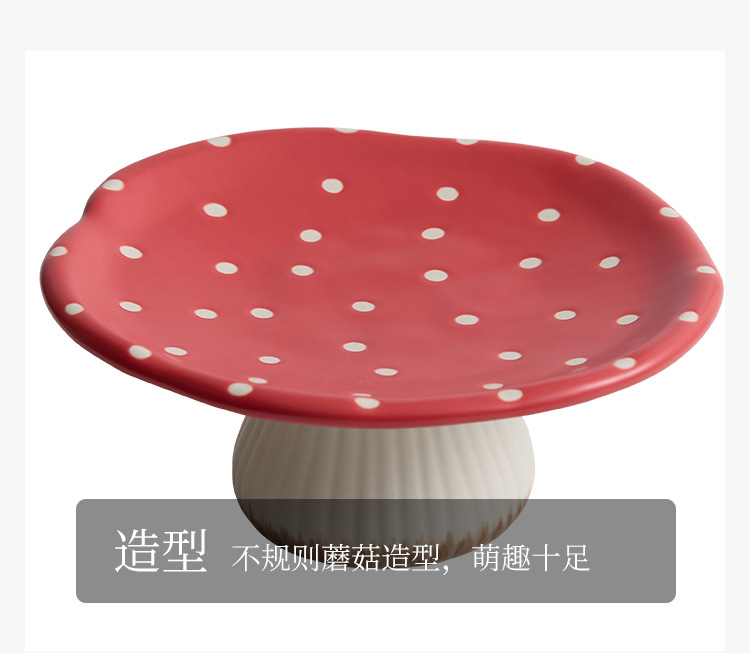 Đĩa gốm sứ hình nấm đỏ dùng trong nhà, kiểu mới 2025, bộ đồ ăn cao cấp, khay đựng bánh ngọt trà chiều