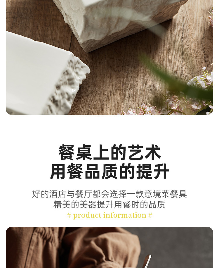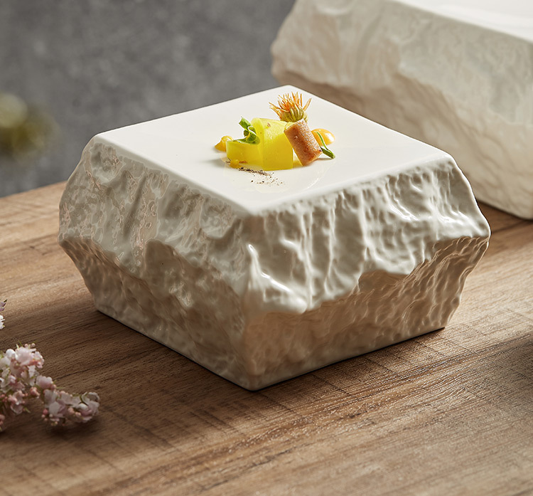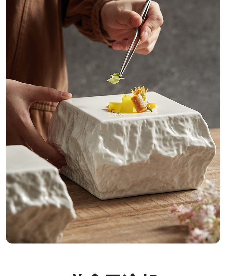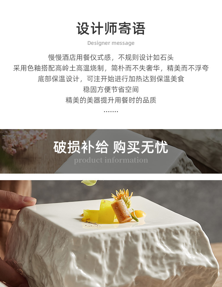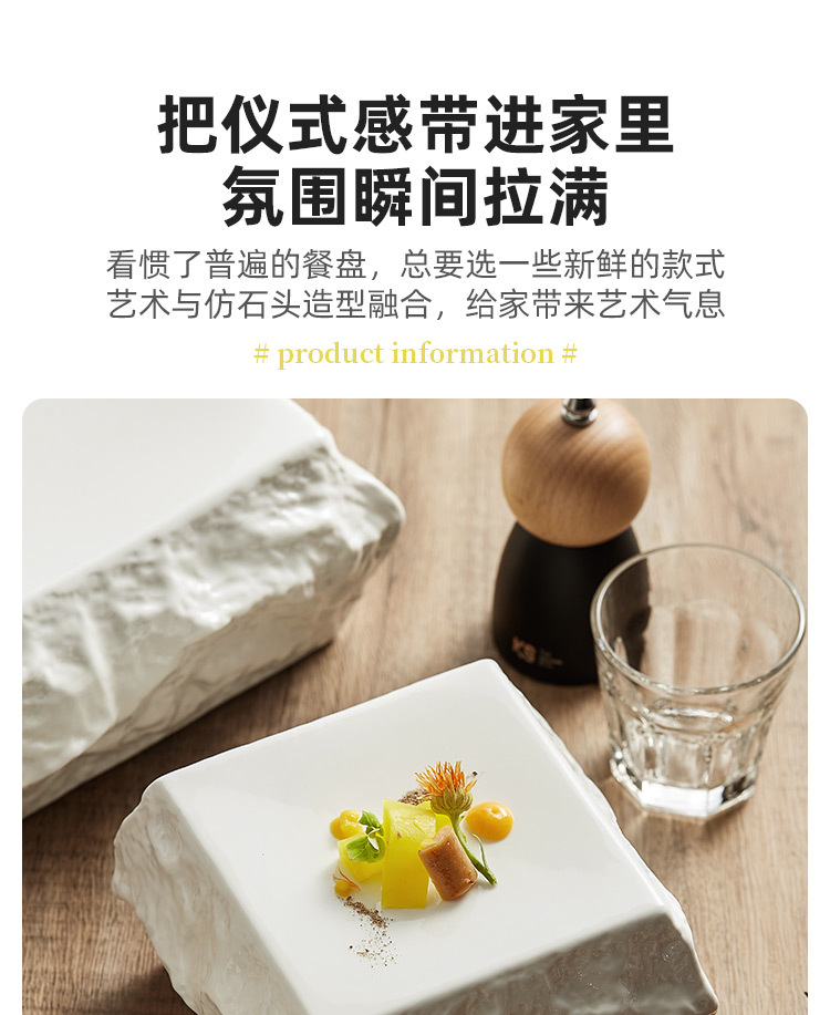 Đĩa hình đá không đều kiểu Nhật, đĩa thực phẩm, nhà hàng khách sạn, câu lạc bộ, đĩa ăn phương Tây, đĩa phẳng, Bộ đồ ăn Nghi Lễ cao cấp