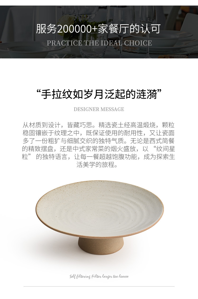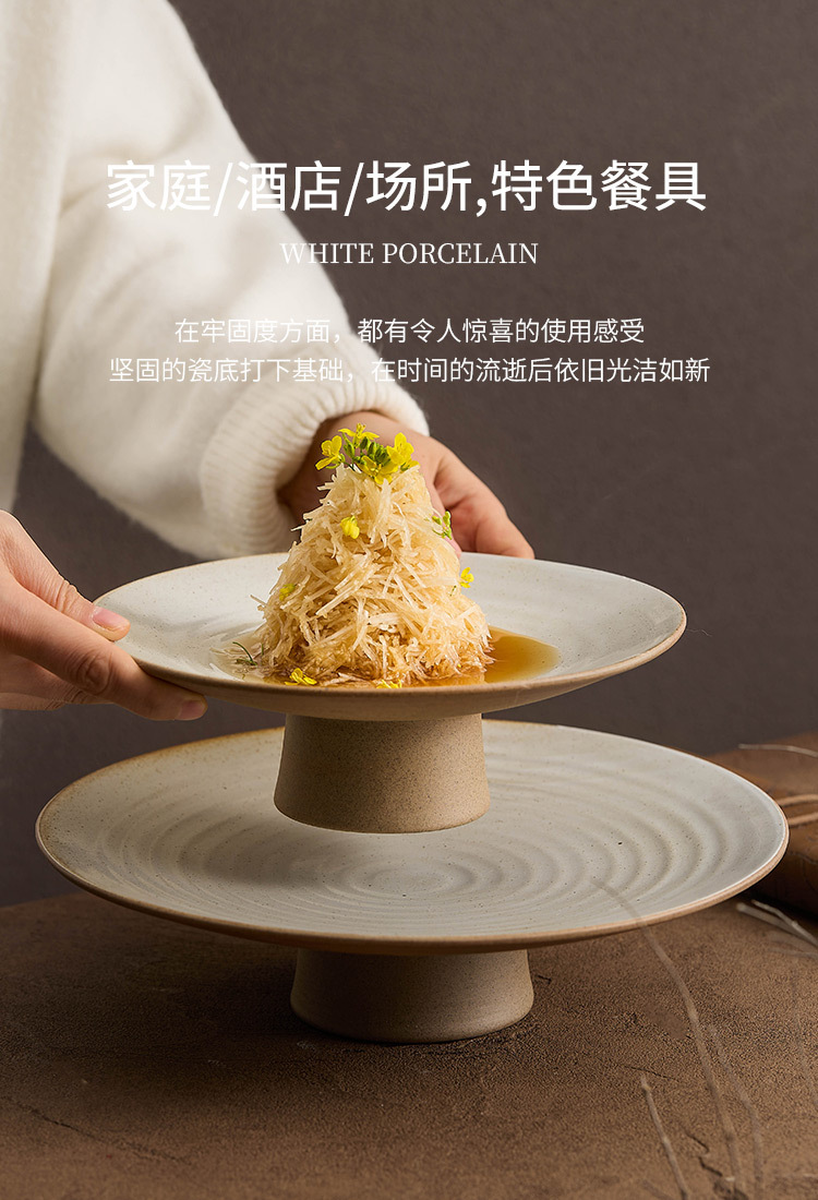 Đĩa hoa quả gốm thô, đĩa chân cao, bộ đồ ăn khách sạn cao cấp, đĩa chân cao, đĩa đựng đồ kiểu Trung Quốc cổ điển, đĩa đựng đồ ăn nhỏ có ren