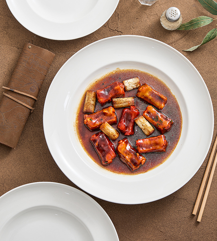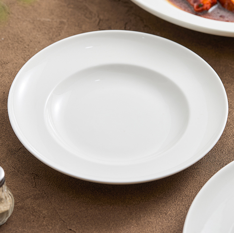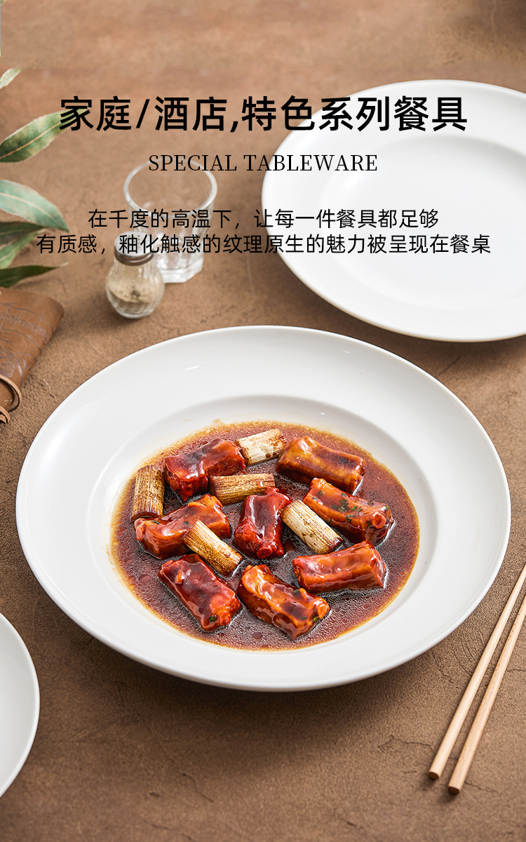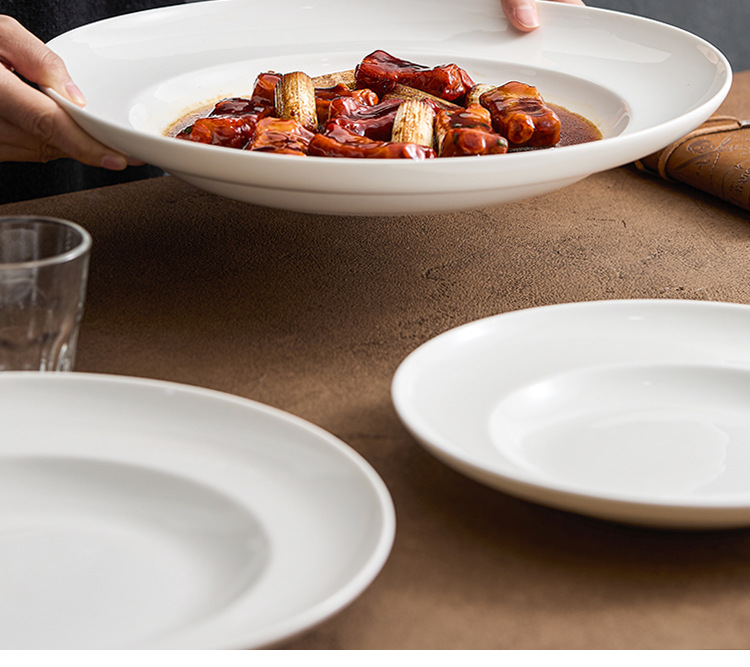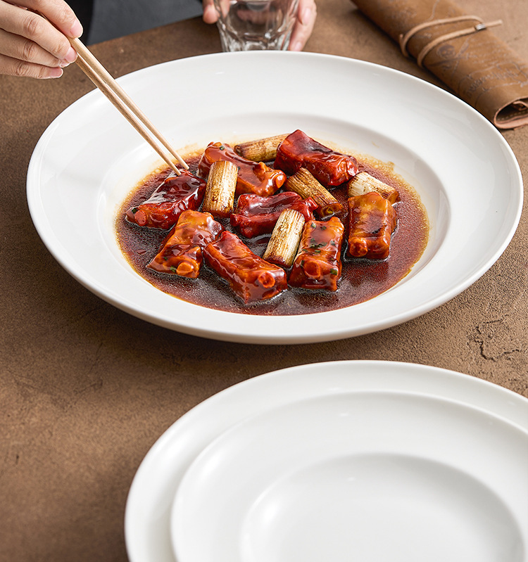 Đĩa hoa văn đá lạ sao băng, bộ đồ ăn Lò Nung cảm giác cao cấp, đĩa canh sâu, đĩa đựng thức ăn cỡ lớn, đĩa gốm trắng gia dụng