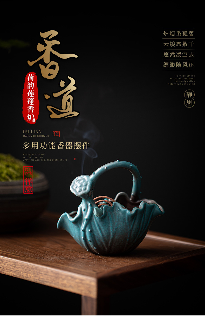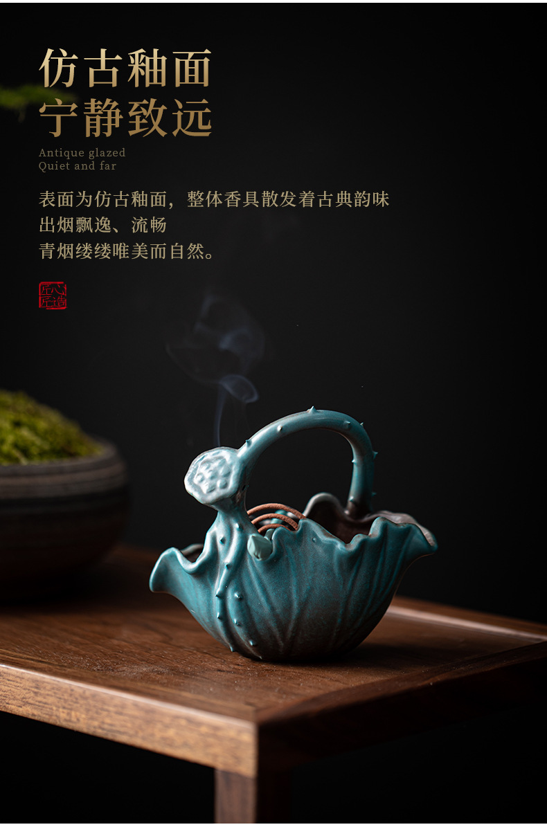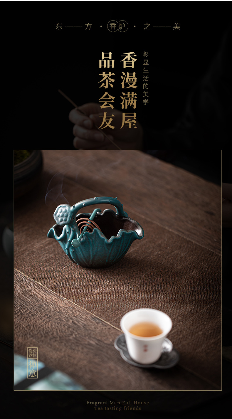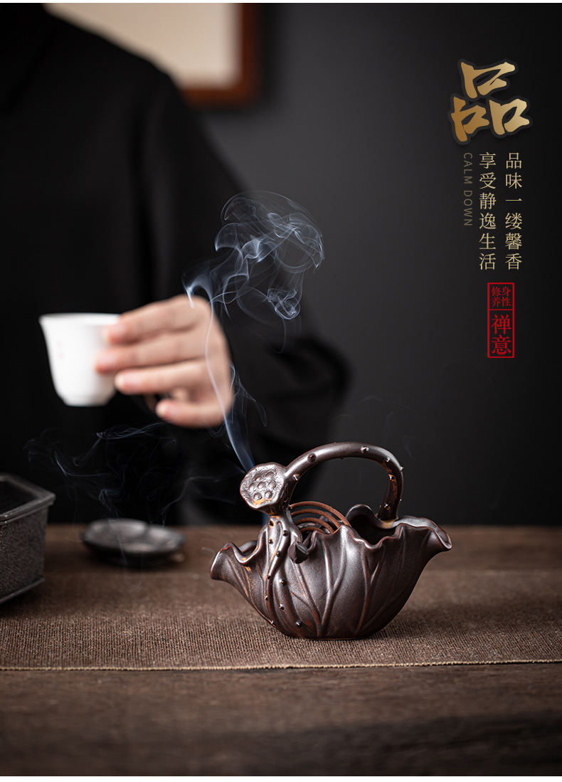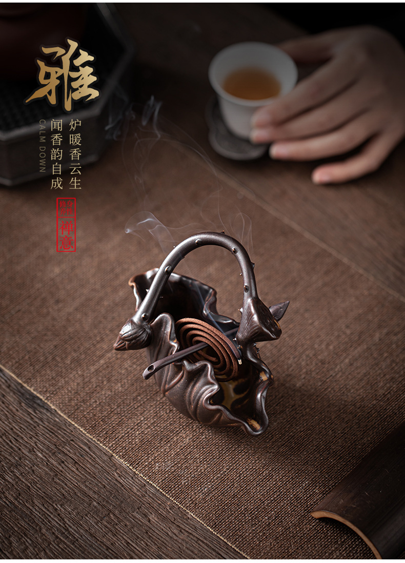 Đĩa hương sen vần sen, bàn trà gỗ đàn hương trầm hương, máy xông hương, trà đạo, yên tĩnh và xa
