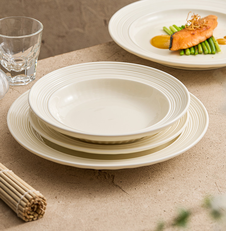 Đĩa kiểu kem, dùng trong gia đình, mẫu mới 2025, đĩa ăn steak, đĩa ăn sáng tròn gốm sứ cao cấp, sang trọng nhẹ nhàng, dùng để bày món ăn.