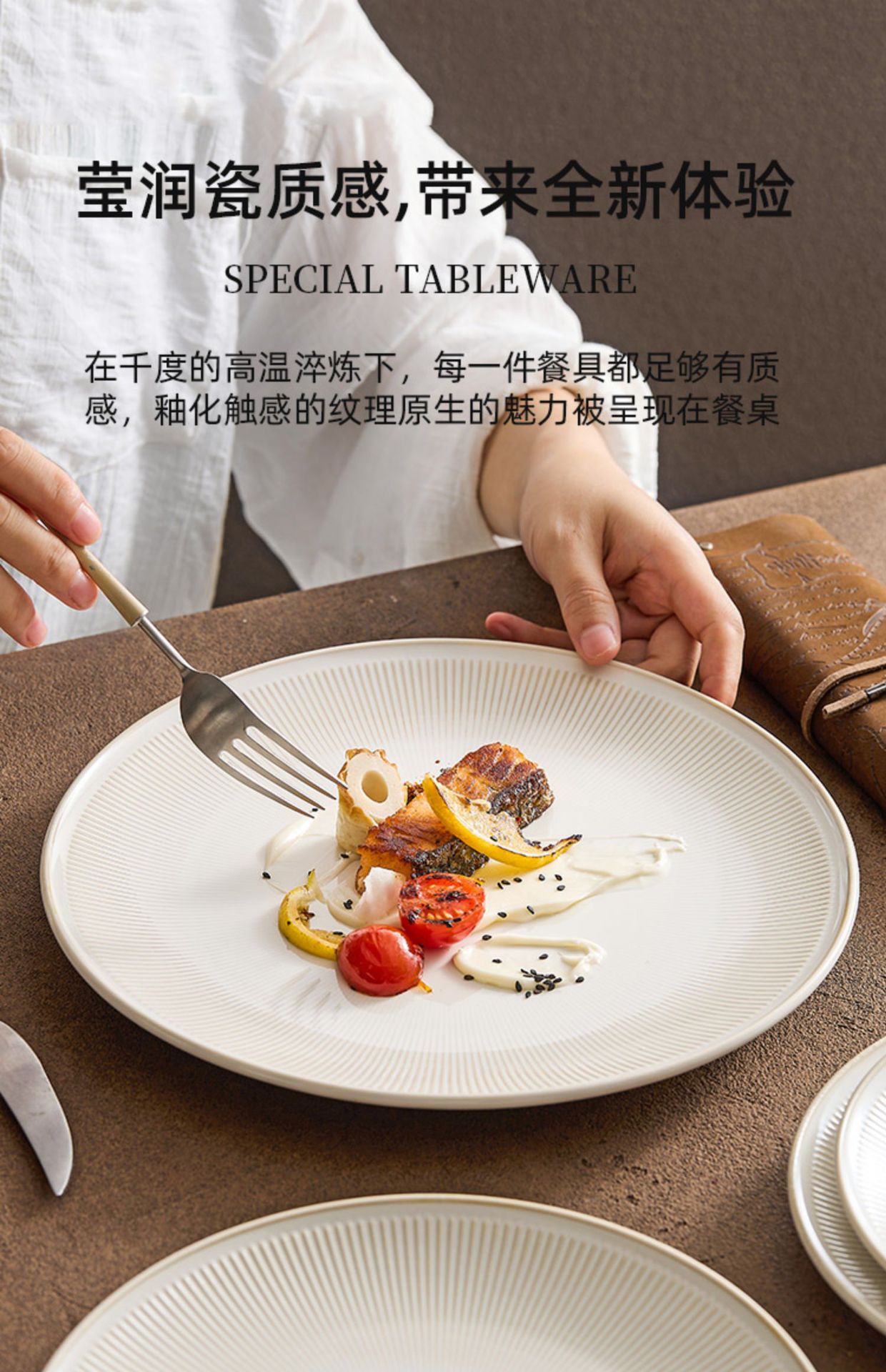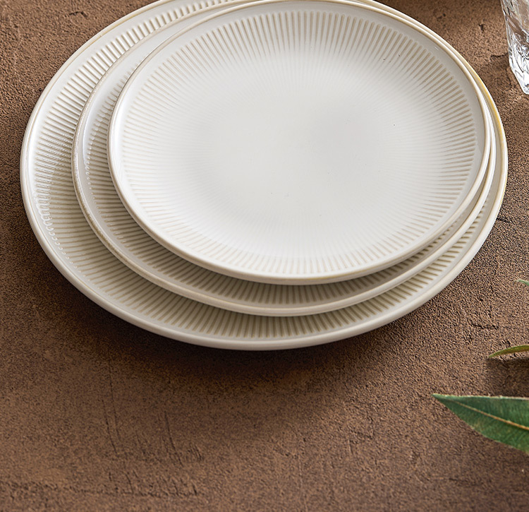 - Đĩa màu be, đĩa dùng trong nhà, đĩa nông mang vẻ sang trọng, đĩa sứ cao cấp dùng cho món bò bít tết và món ăn kiểu Tây, đĩa tròn, mẫu mới 2025 dùng để bày món ăn.