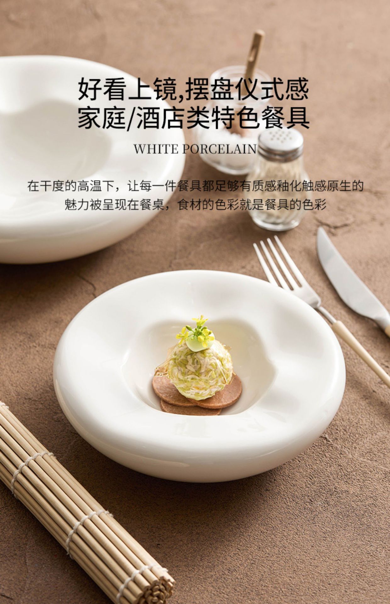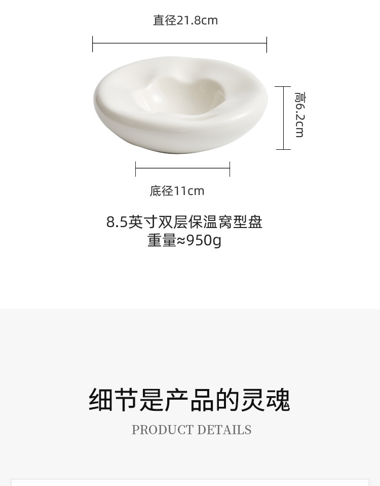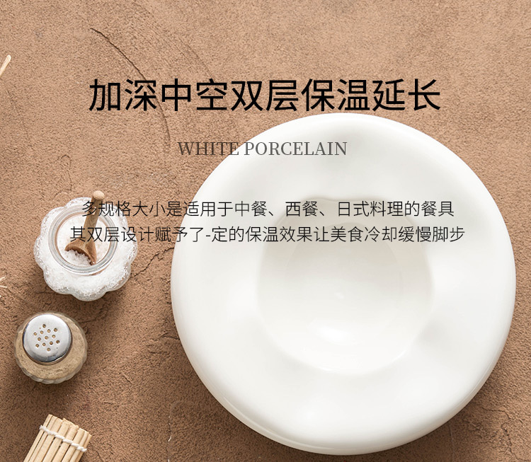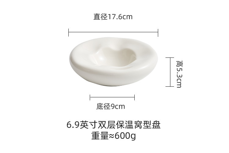 - Đĩa món ăn hai lớp sứ trắng, nhà hàng khách sạn cao cấp, đĩa cách nhiệt đặc trưng sáng tạo, Đĩa tráng miệng kiểu tổ