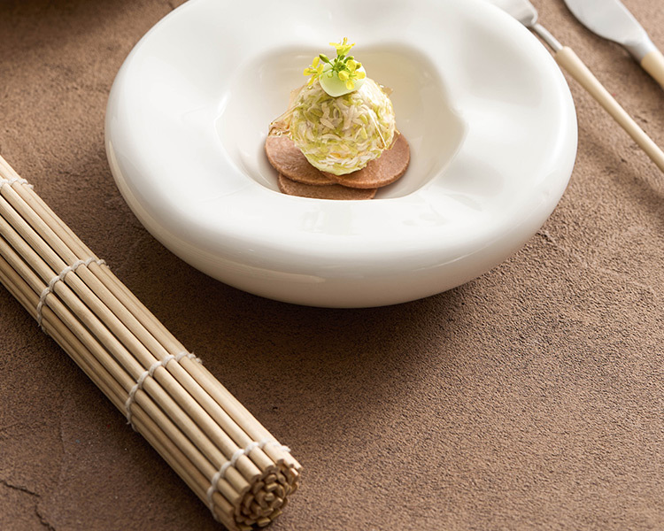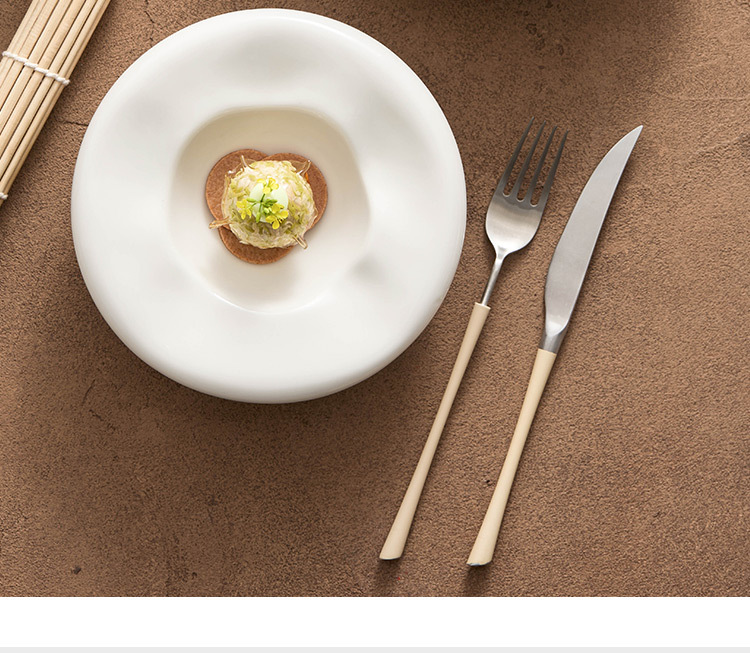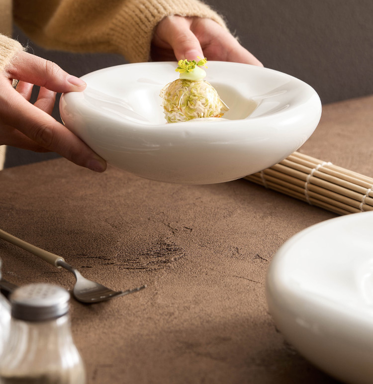 Đĩa món ăn hai lớp sứ trắng, nhà hàng khách sạn cao cấp, đĩa cách nhiệt đặc trưng sáng tạo, Đĩa tráng miệng kiểu tổ