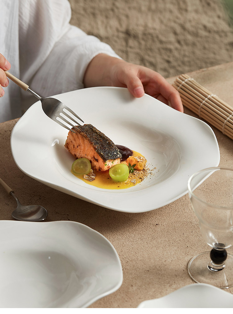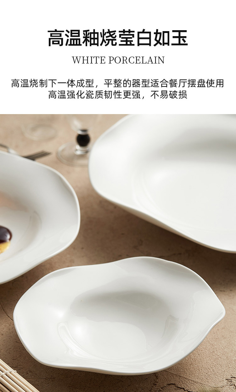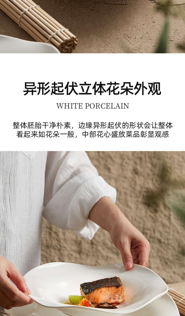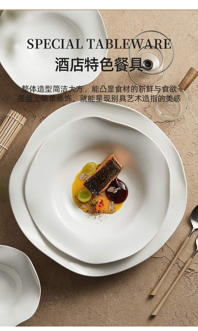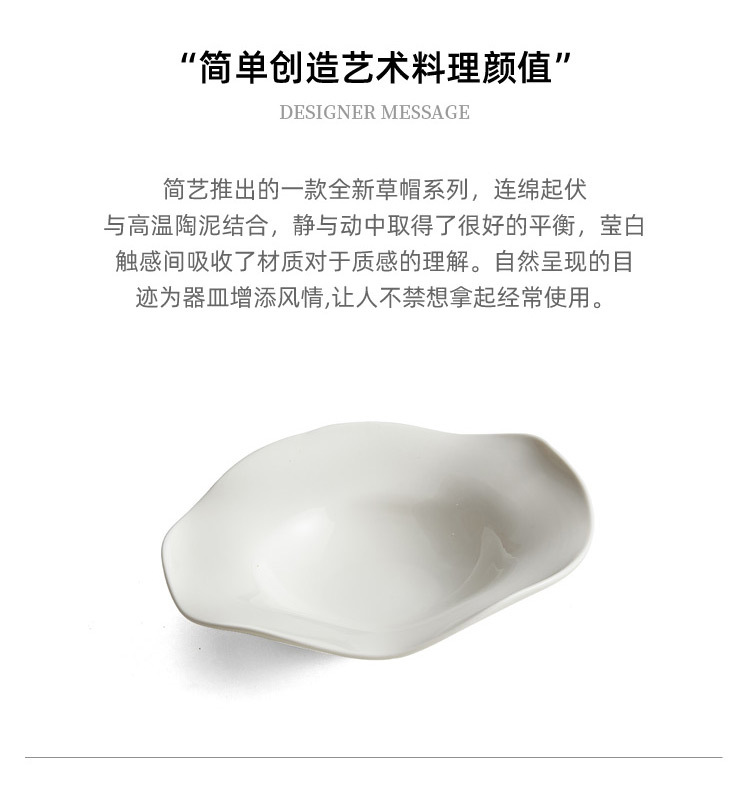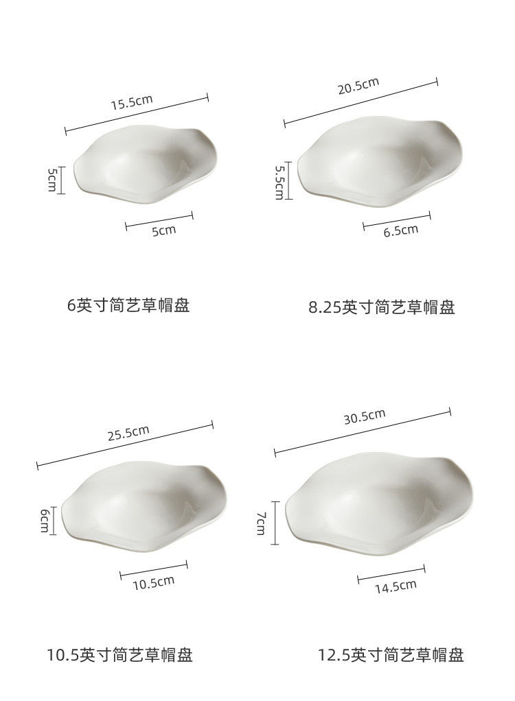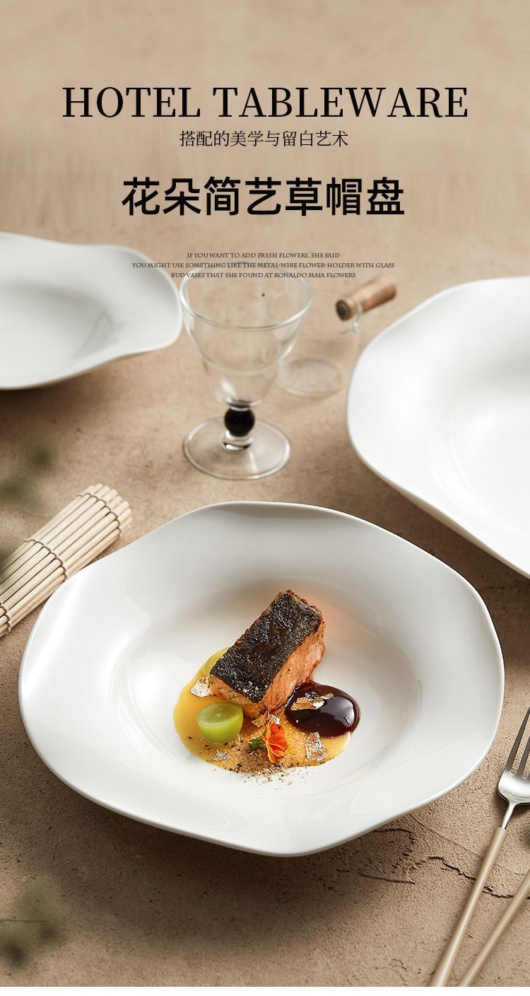 - Đĩa mũ rơm gốm, đĩa salad không đều, đĩa súp, nhà hàng khách sạn, bộ đồ ăn đặc biệt sáng tạo, đĩa rau nghệ thuật màu trắng