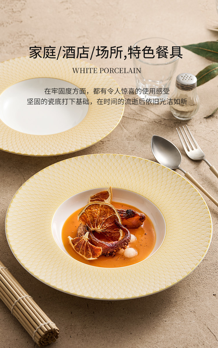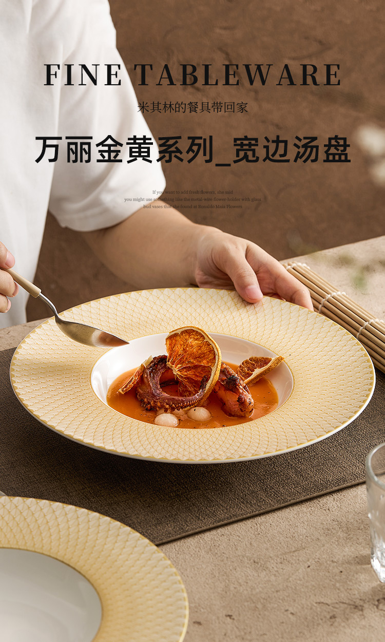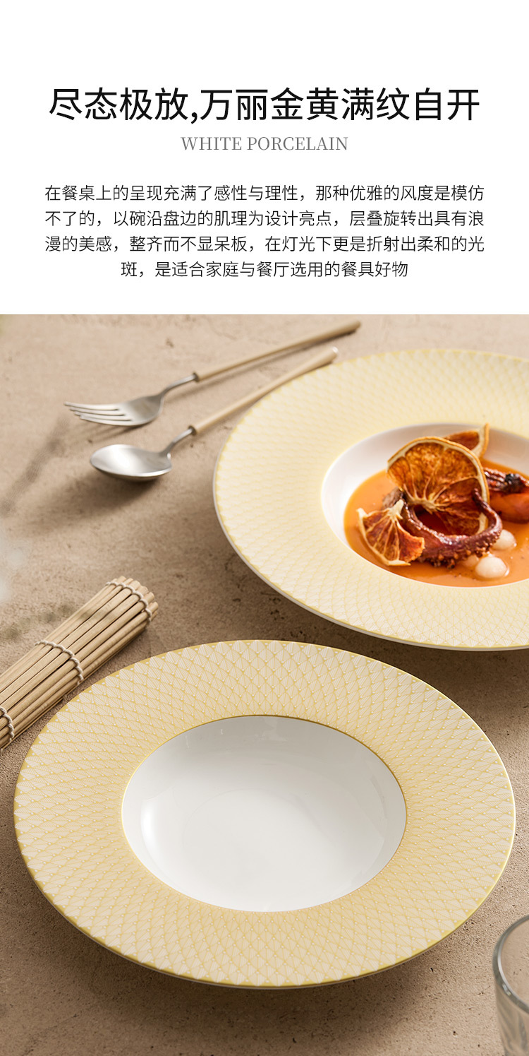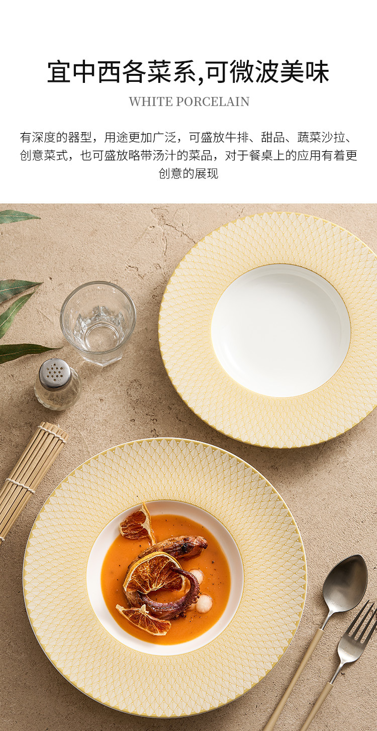 - Đĩa mũ rơm gốm vàng Renaissance Đĩa gia dụng Đĩa salad trái cây cao cấp Đĩa ăn phương Tây Đĩa mì Ý nhà hàng