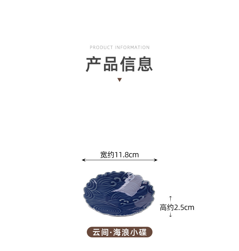 Đĩa nhỏ sóng biển Yunjian Đĩa trái cây gốm sứ kiểu Trung Quốc Đĩa giải khát Bàn cà phê phòng khách Đĩa bánh ngọt Đĩa bánh ngọt Đĩa hạt dưa