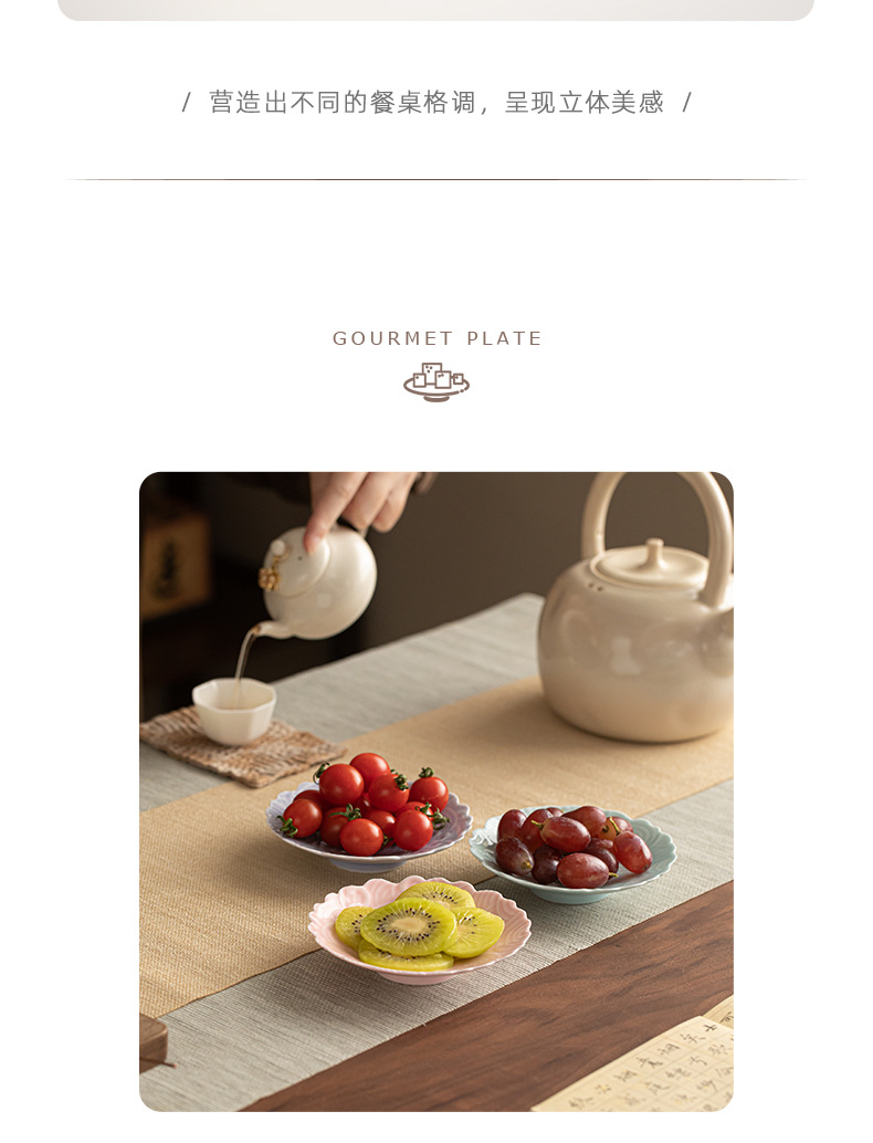 - Đĩa nhỏ sóng biển Yunjian Đĩa trái cây gốm sứ kiểu Trung Quốc Đĩa giải khát Bàn cà phê phòng khách Đĩa bánh ngọt Đĩa bánh ngọt Đĩa hạt dưa
