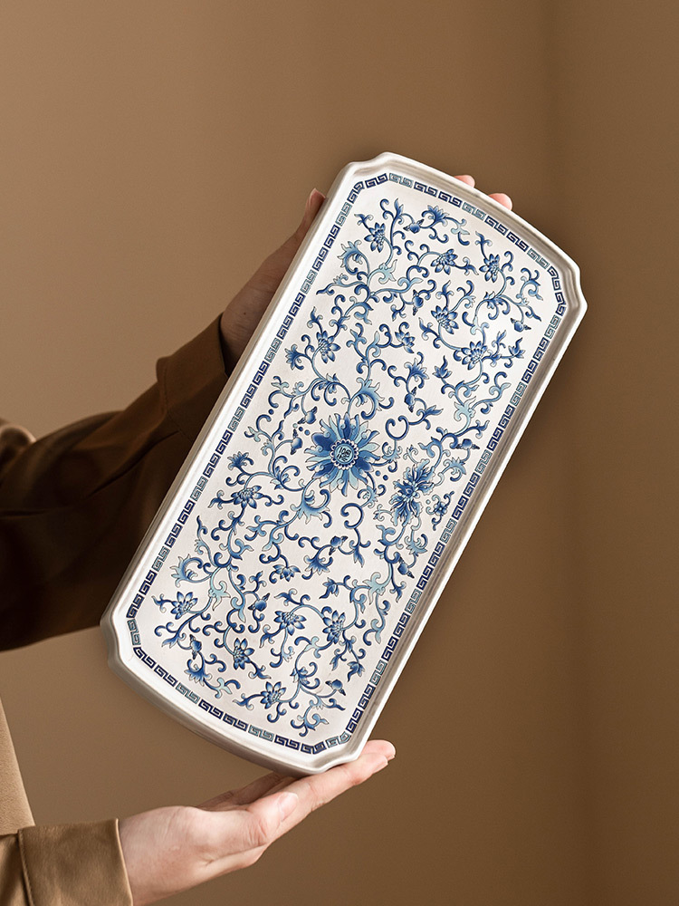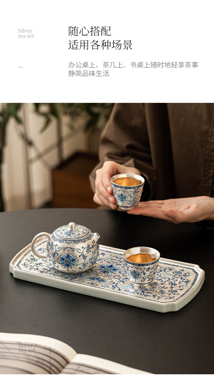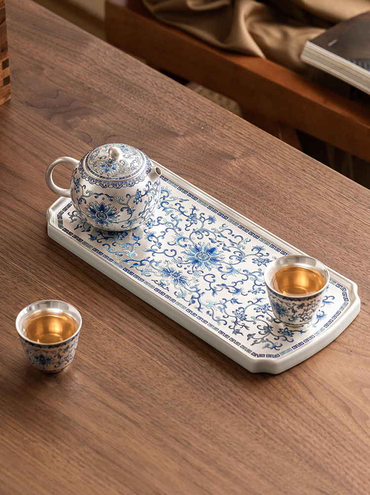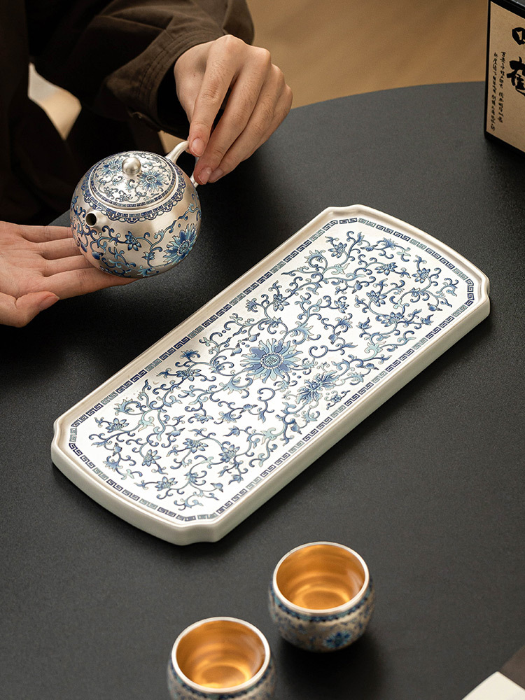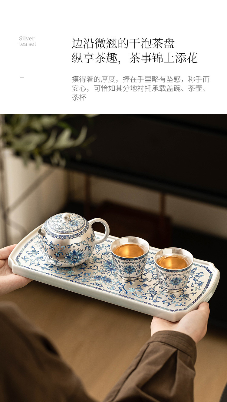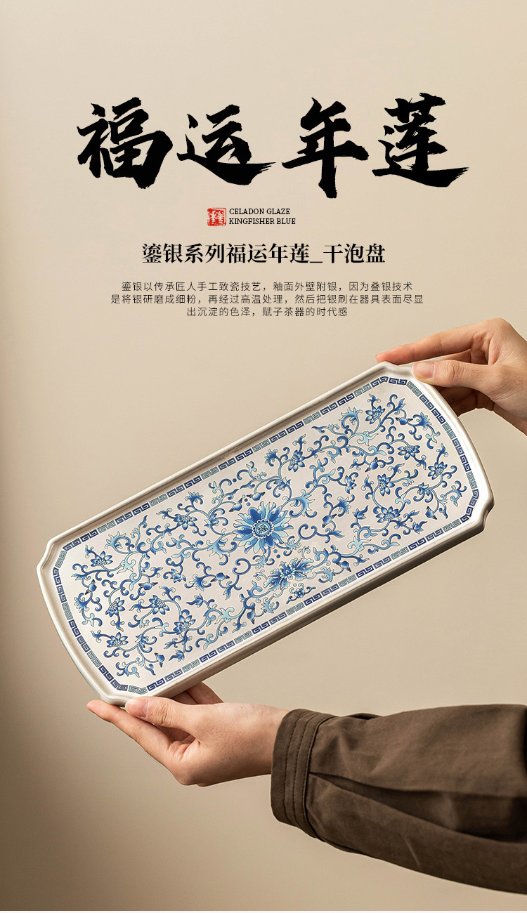 - Đĩa pha khô Fuyun Nian Lian mạ bạc, bàn trà nhỏ, khay trà, bộ trà cao cấp, khay trà, bình gốm, khay trà, khay pha khô