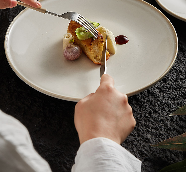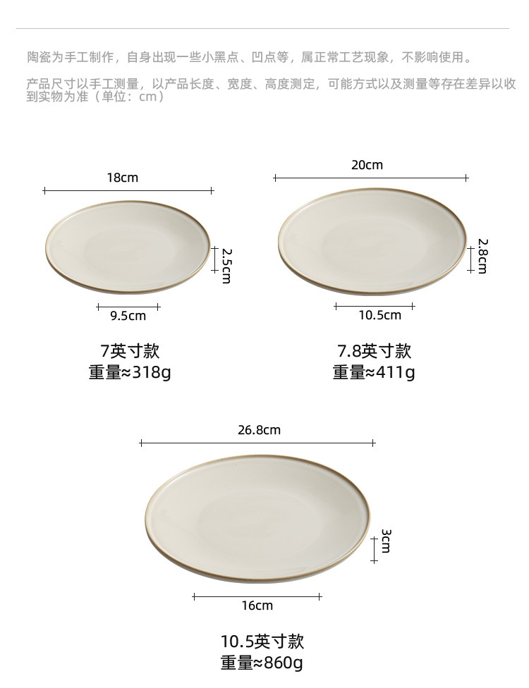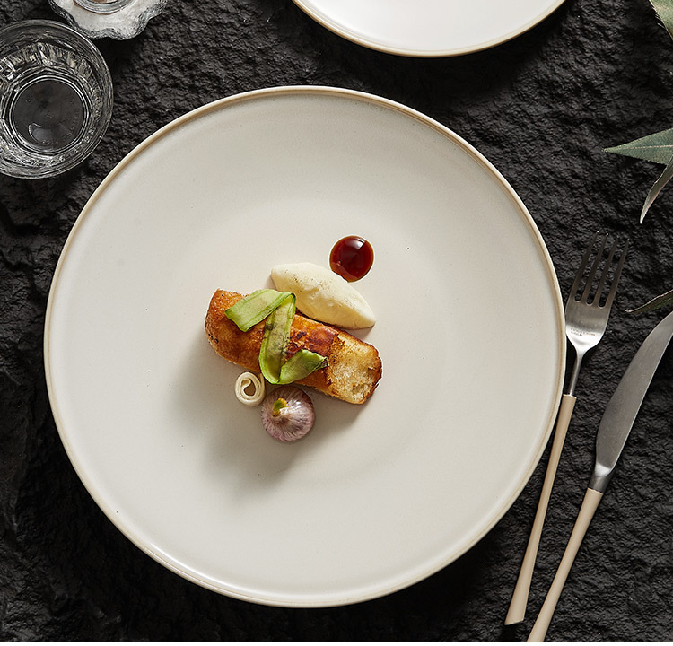 - Đĩa phẳng biến đổi lò màu be, Đĩa nông, đĩa gốm sứ, đĩa rau, đĩa salad đồ tây sang trọng cao cấp gia dụng, đĩa mì Ý