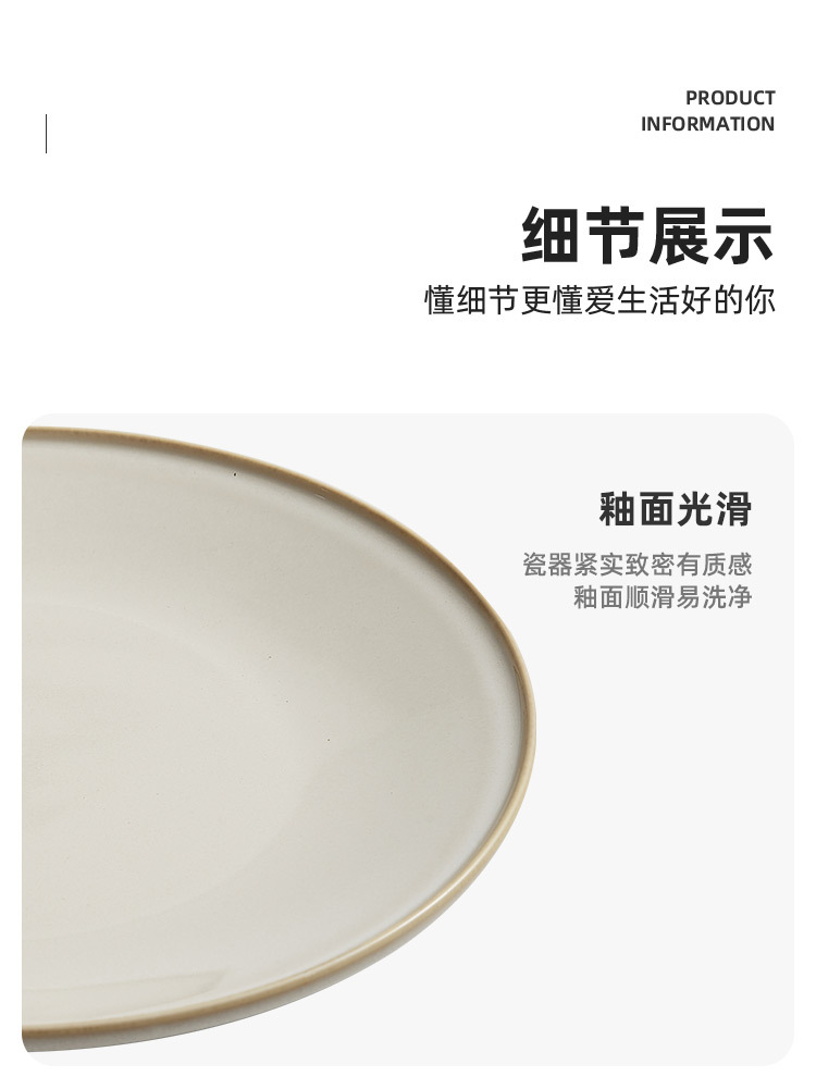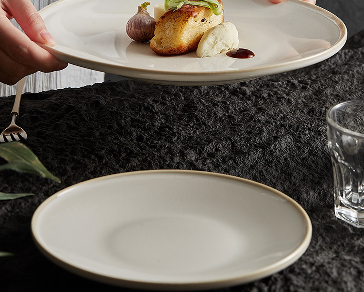 Đĩa phẳng biến đổi lò màu be, Đĩa nông, đĩa gốm sứ, đĩa rau, đĩa salad đồ tây sang trọng cao cấp gia dụng, đĩa mì Ý