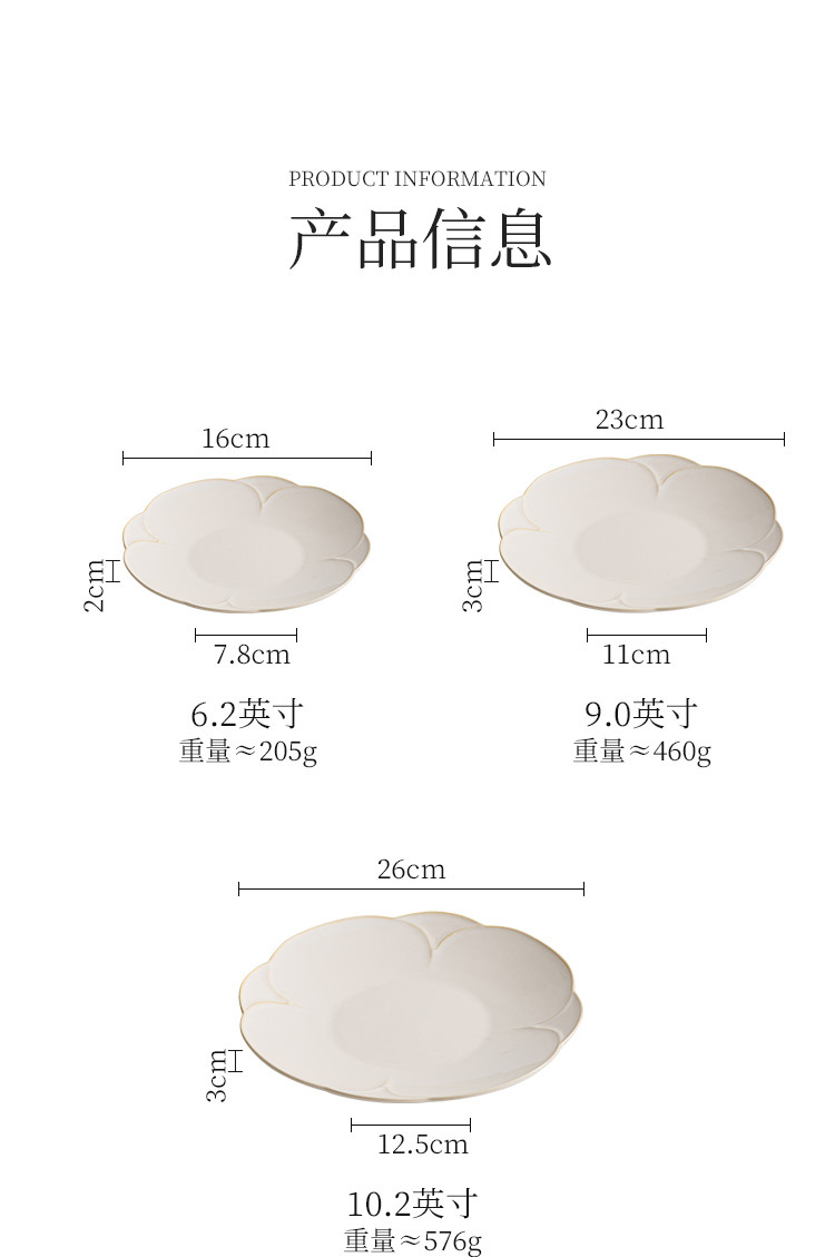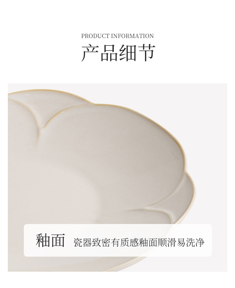 Đĩa phẳng cánh hoa màu be, đĩa gốm, đĩa thức ăn gia dụng, đĩa ăn không quy tắc, đĩa bít tết cao cấp, đĩa ăn Tây