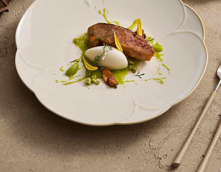 - Đĩa phẳng cánh hoa màu be, đĩa gốm, đĩa thức ăn gia dụng, đĩa ăn không quy tắc, đĩa bít tết cao cấp, đĩa ăn Tây
