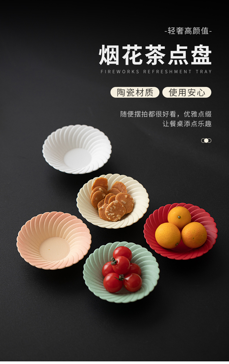 - Đĩa phục vụ pháo hoa Đĩa hoa quả gốm sứ cỡ nhỏ kiểu Trung Quốc Đĩa ăn vặt gia dụng Phòng khách Đĩa phục vụ đồ ăn nhẹ Khay trái cây Đĩa hạt