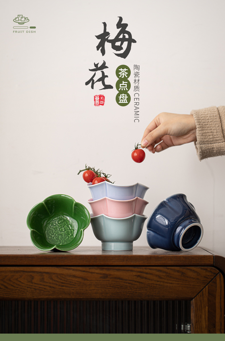 - Đĩa phục vụ trà hoa mận Đĩa phục vụ bánh ngọt bằng gốm sứ kiểu Trung Quốc Đĩa hoa quả khô Đĩa bày đĩa đựng hoa quả khách sạn phòng khách gia dụng