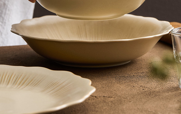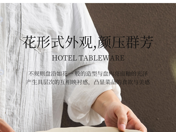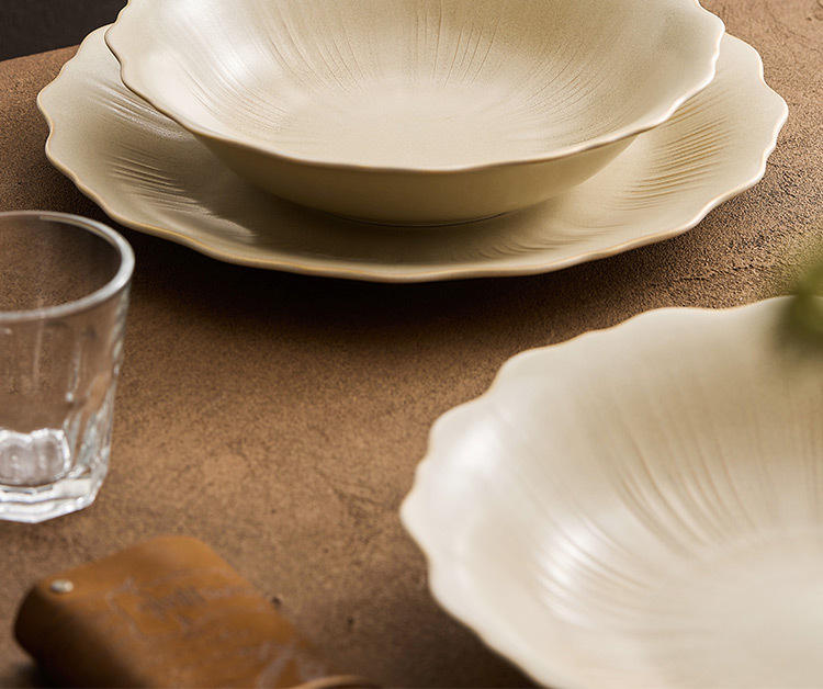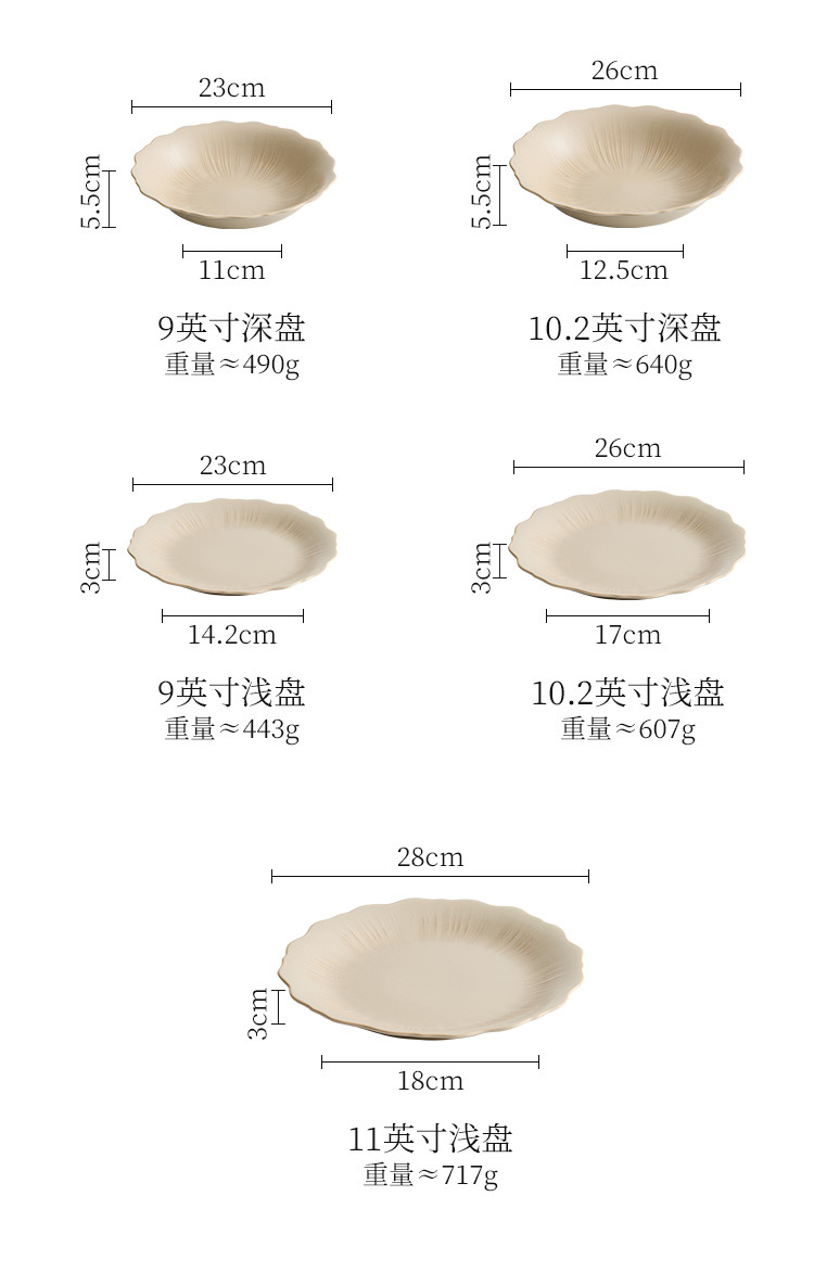 Đĩa ren màu be trở thành lò nung Đức Hoa, đĩa đựng đồ ăn bằng gốm cao cấp gia dụng, đĩa canh sâu, đĩa nông, đĩa phẳng cỡ lớn