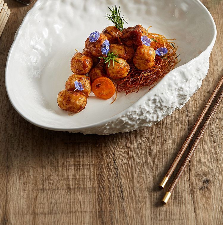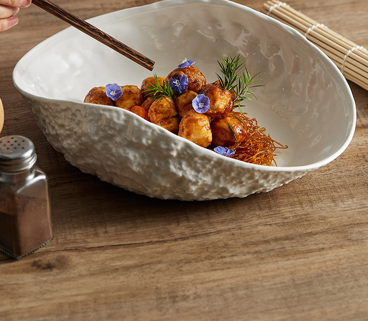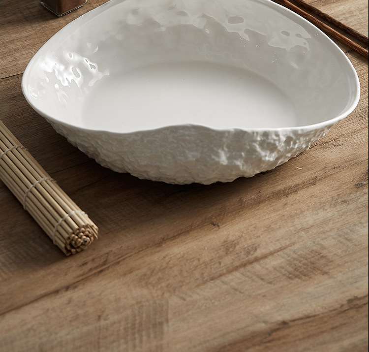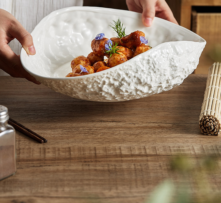 Đĩa sứ cao cấp họa tiết đá, mẫu mới 2025, sang trọng, dùng được trong gia đình và khách sạn, thích hợp đựng súp cá hấp lớn
