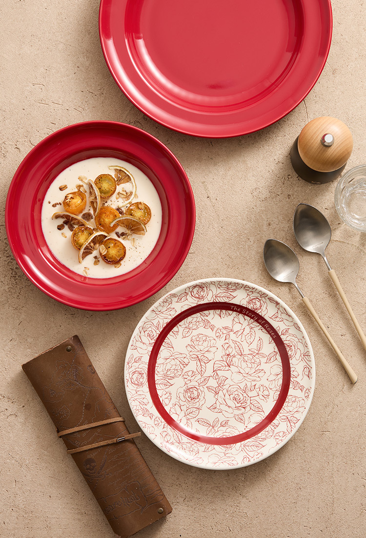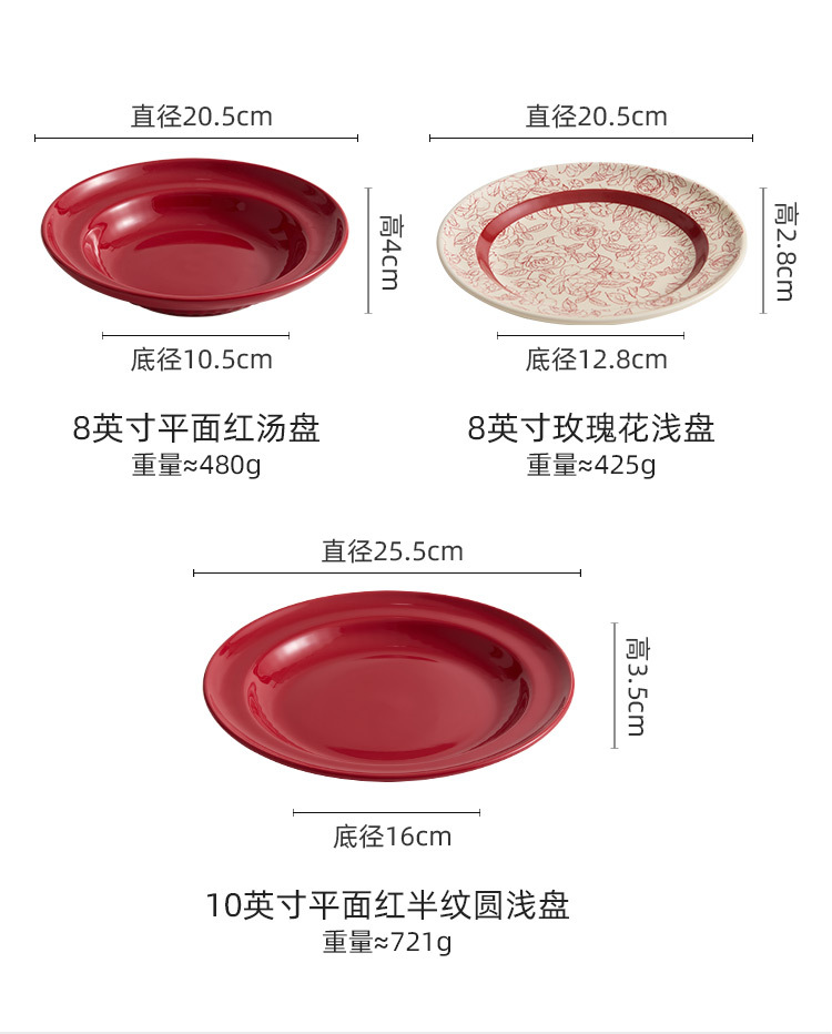 Đĩa sứ tròn nông màu hồng, men màu, dùng trong nhà, khách sạn, cao cấp, kiểu Pháp, đẹp, dùng ăn tối