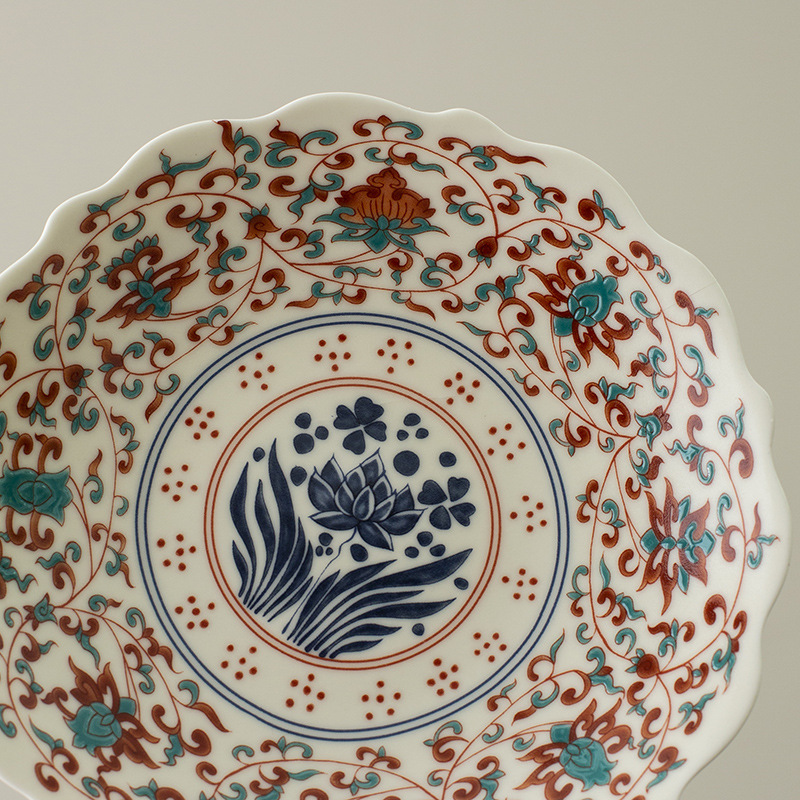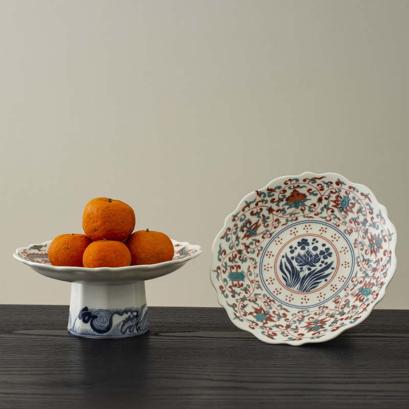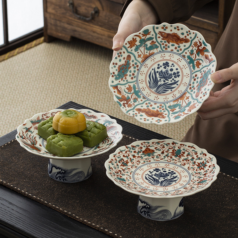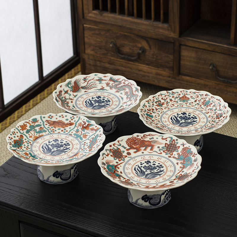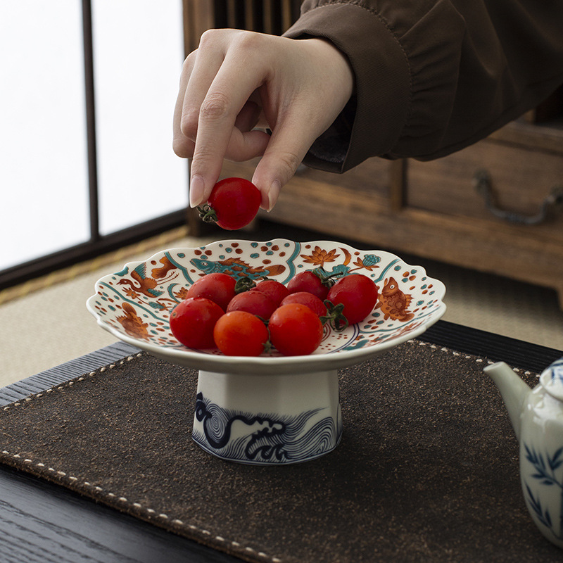 - Đĩa trái cây chân cao gốm tráng men kiểu Trung Quốc mới, đĩa ăn nhẹ, đĩa trái cây, bàn trà phòng khách, đĩa ăn nhẹ gia dụng