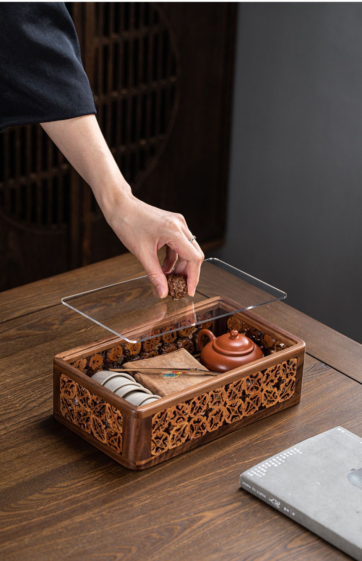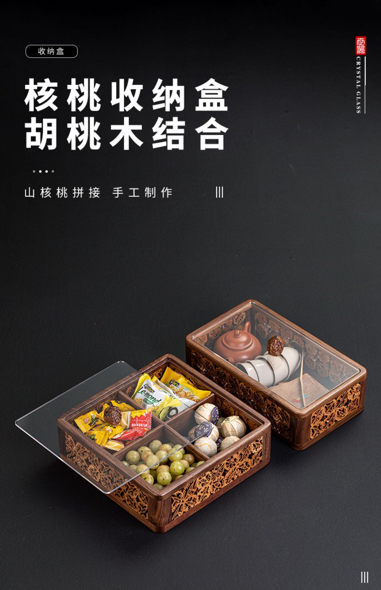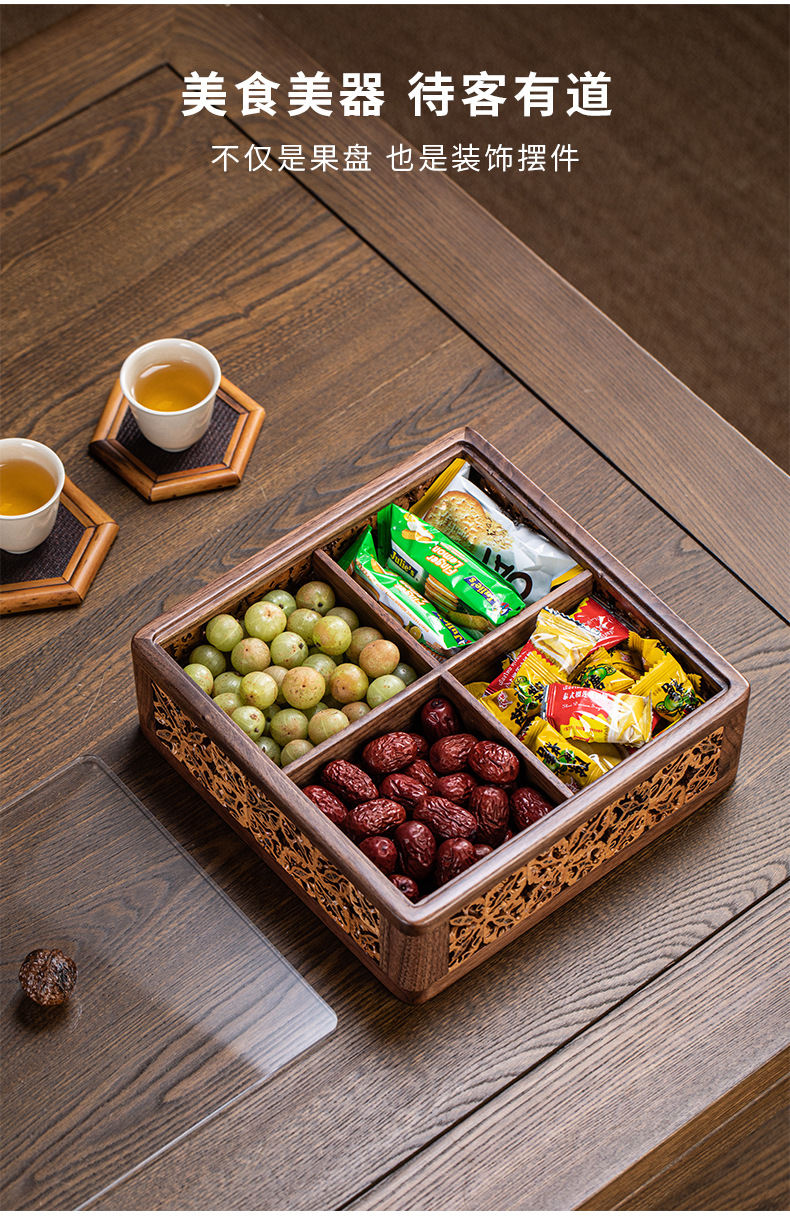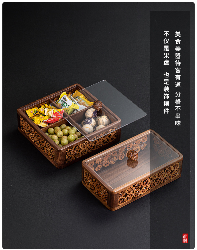 - Đĩa trái cây có ngăn bằng Gỗ Óc Chó Đĩa trái cây tre Đĩa trái cây ăn vặt Hộp đựng đồ kẹo Đĩa trái cây khô Có Nắp Hộp đựng đồ Bộ trà