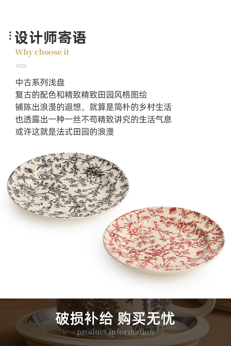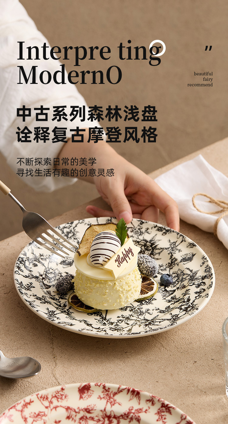 - Đĩa tráng miệng bằng gốm sứ thời trung cổ Đĩa món tráng miệng Đĩa món ăn gia dụng Bộ đồ ăn cao cấp Đĩa món ăn Đĩa món ăn nguội Đĩa hình tròn