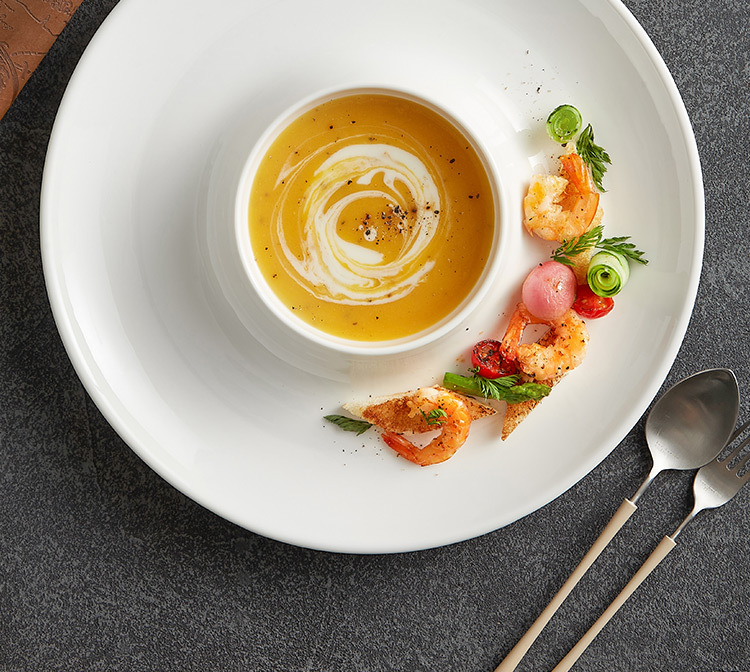 - Đồ ăn phương Tây bằng gốm trắng, đĩa mũ rơm, nhà hàng khách sạn, đĩa nấu ăn phân tử, đĩa ăn, đĩa ăn đặc trưng, Bộ đồ ăn nghệ thuật