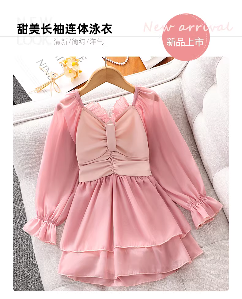 Đồ bơi bé gái hè 2025 kiểu mới, đồ bơi liền thân dài tay chống nắng cho bé gái, đồ bơi trẻ em hè nhanh khô, kiểu lưng trần