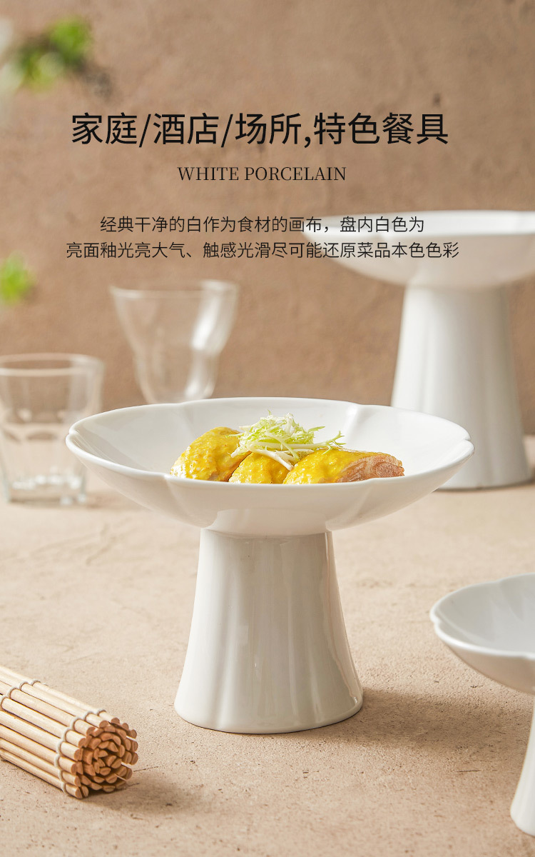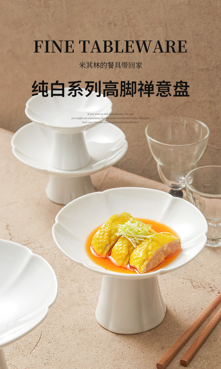 - Đồ giải khát chân cao Zen Món ăn nguội Đĩa Rau lạnh Bộ đồ ăn sáng tạo của khách sạn Đĩa chân cao tinh tế Đĩa đồ ăn nhẹ