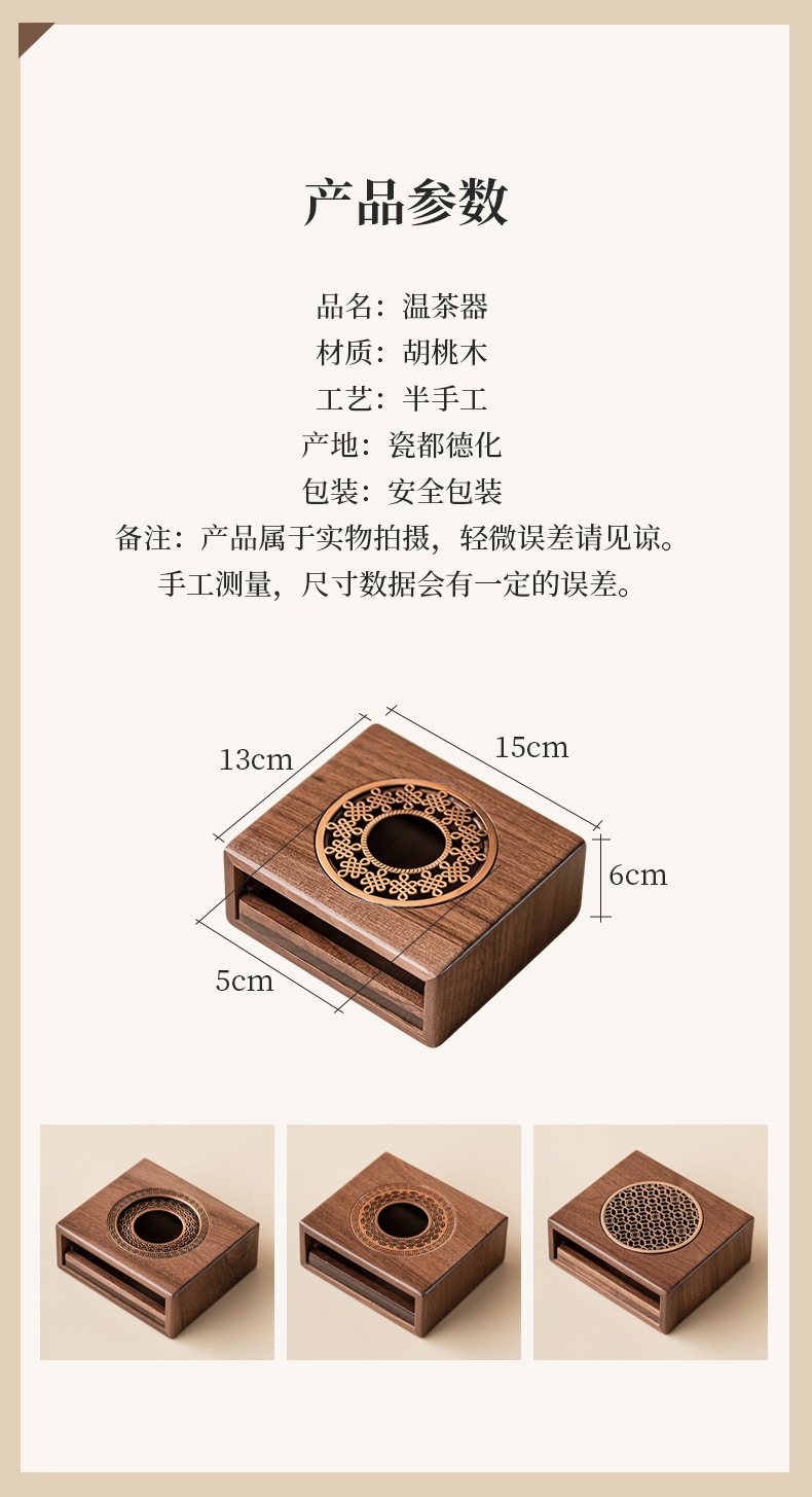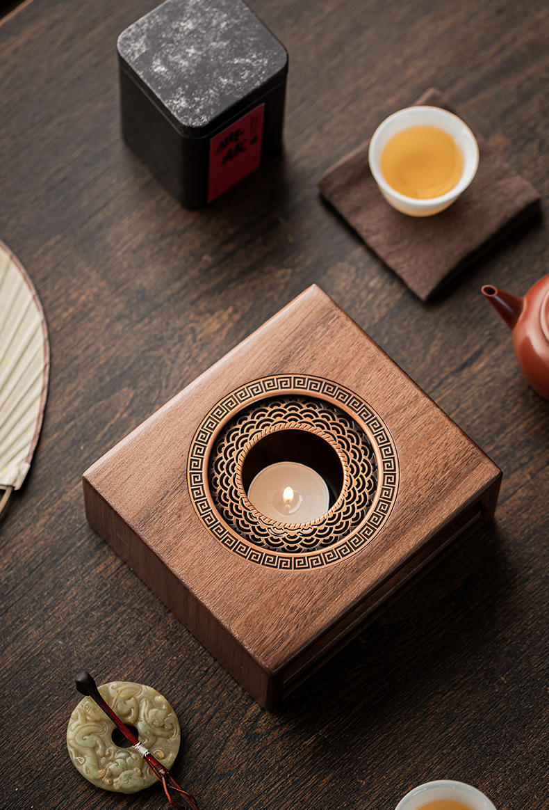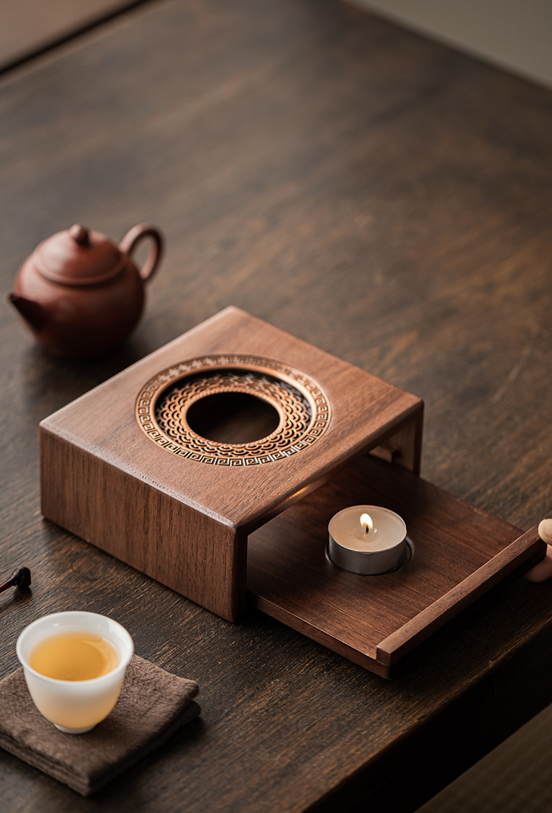 - Đồ giữ ấm trà bằng gỗ óc chó kiểu Trung Quốc, bàn trà gia đình, đế sưởi nến, bếp trà, phụ kiện bộ ấm trà