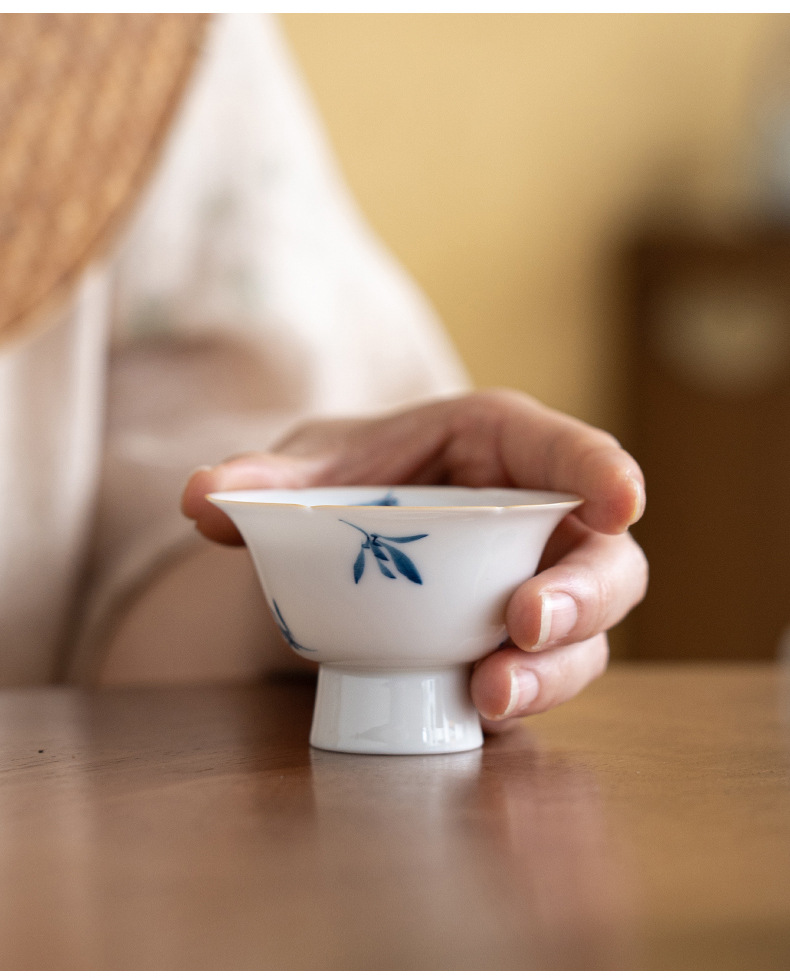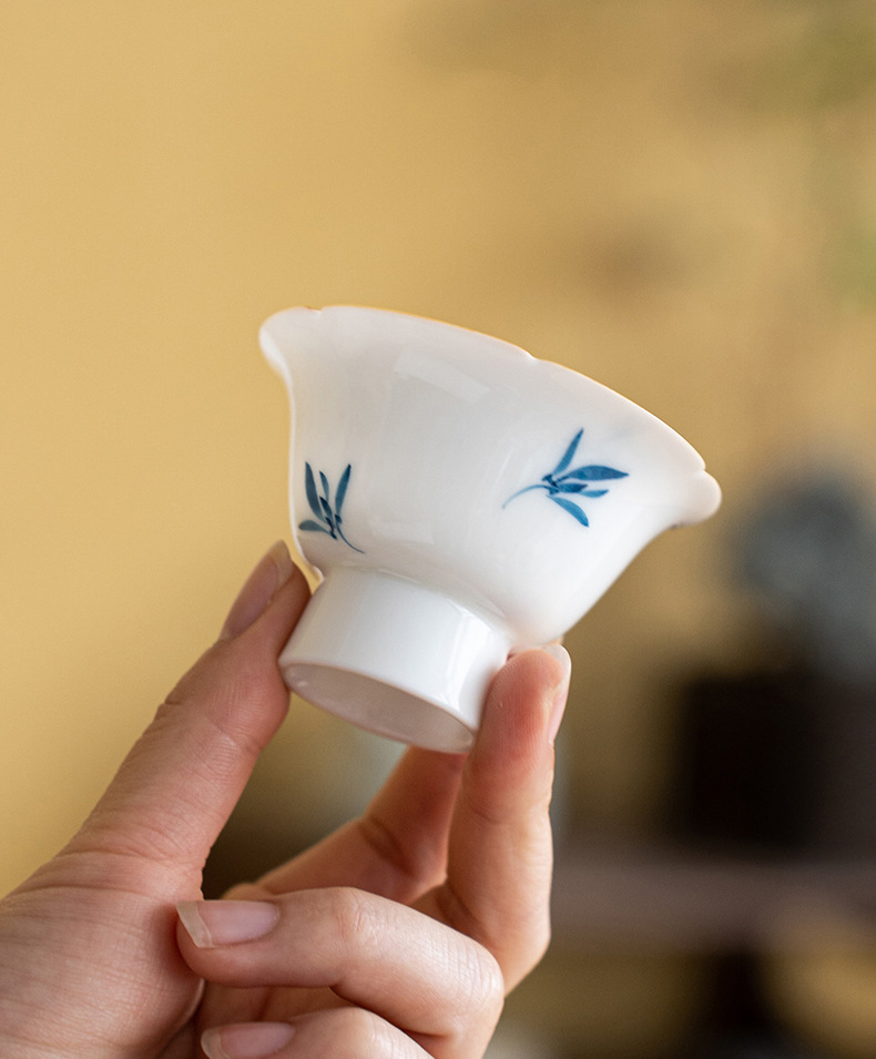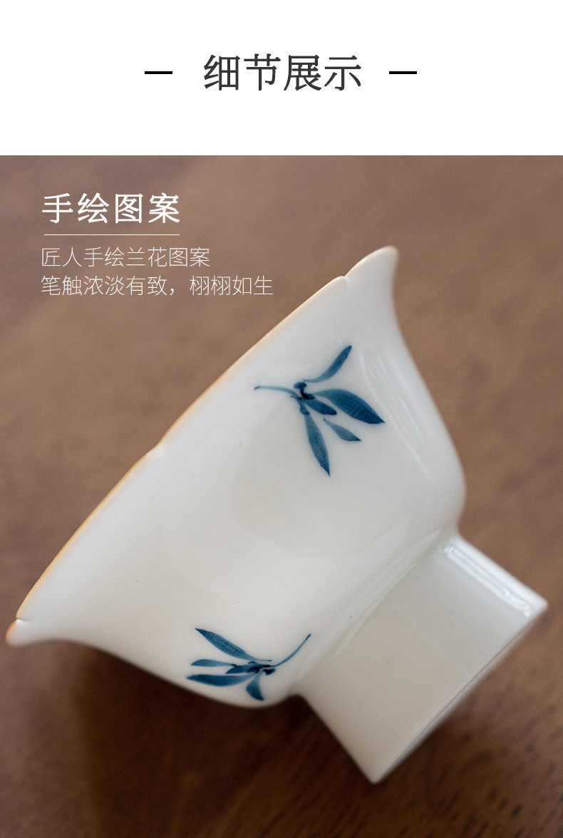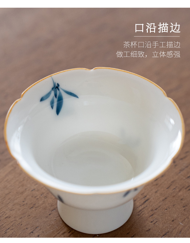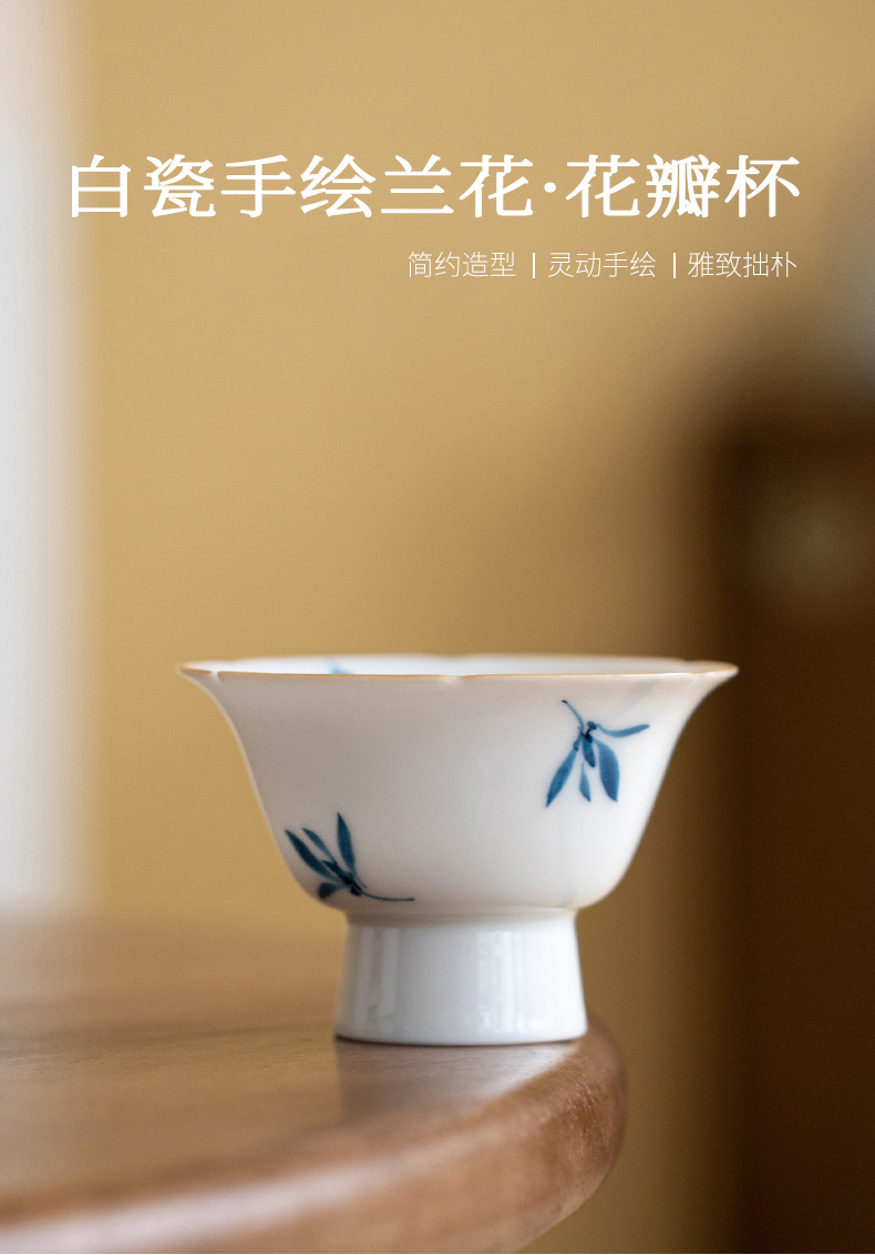 - Đồ sứ trắng vẽ tay hoa lan chân cao cánh hoa cốc gốm sứ bộ trà kungfu cốc chủ sở hữu cốc đơn sản phẩm gia dụng cốc trà nhỏ
