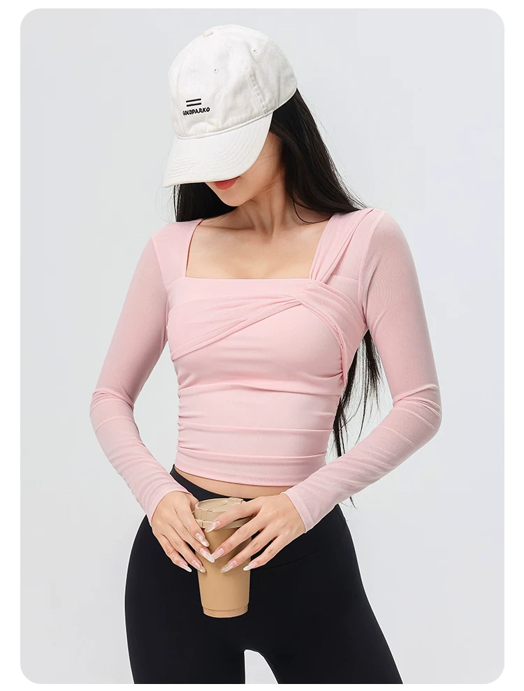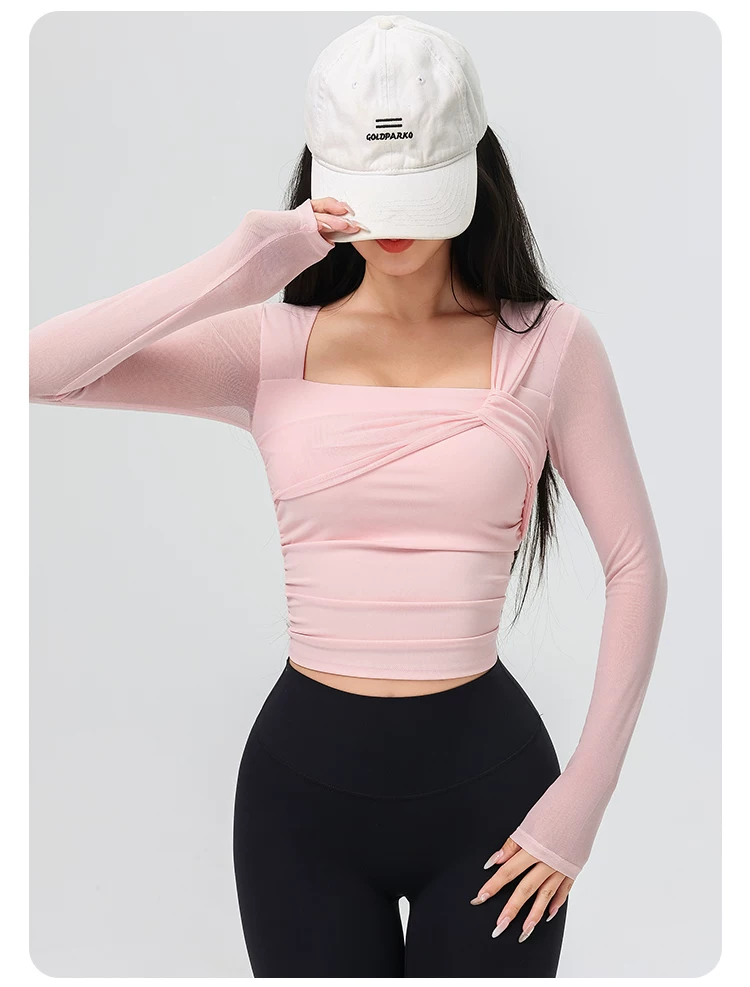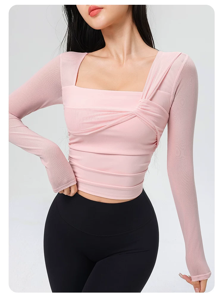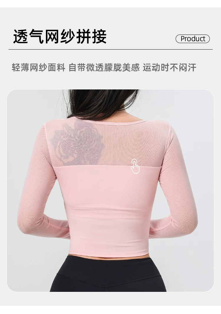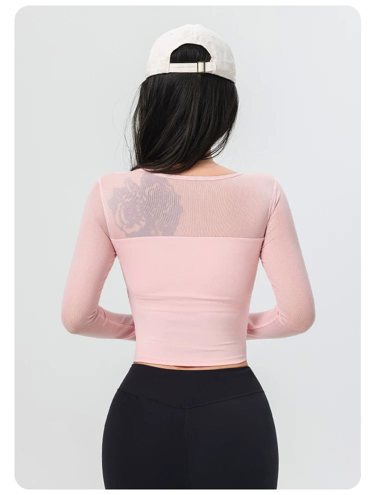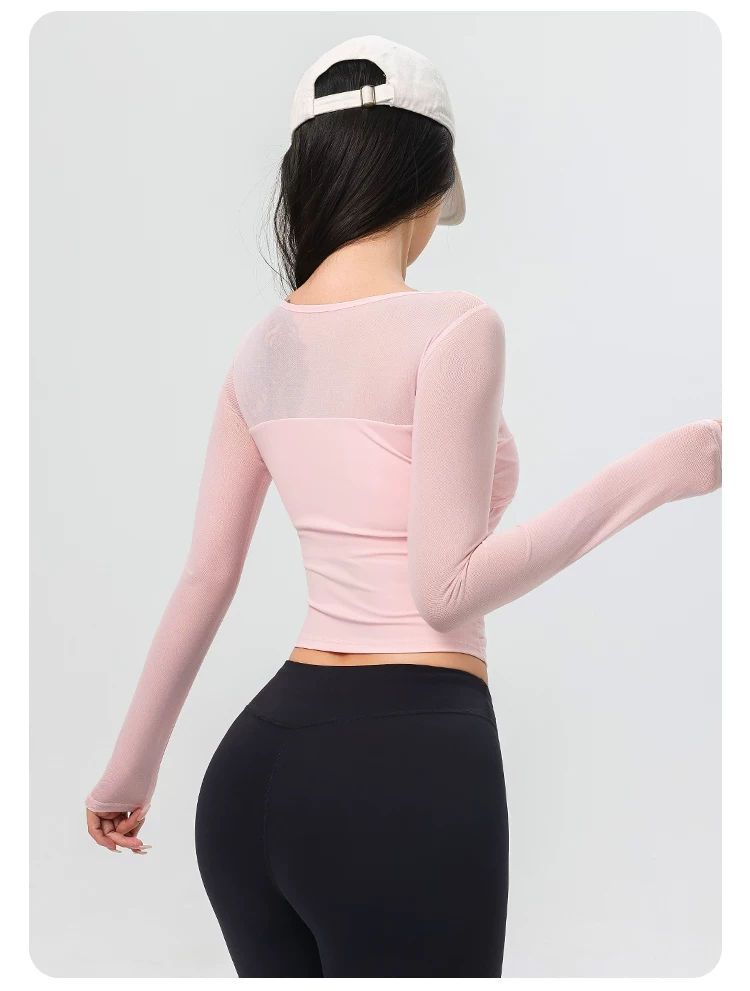 Đồ tập yoga cho nữ có đệm ngực, áo thể thao lưới đẹp, quần áo tập Pilates dài tay ôm sát cho mùa xuân