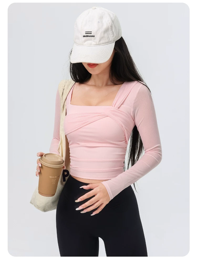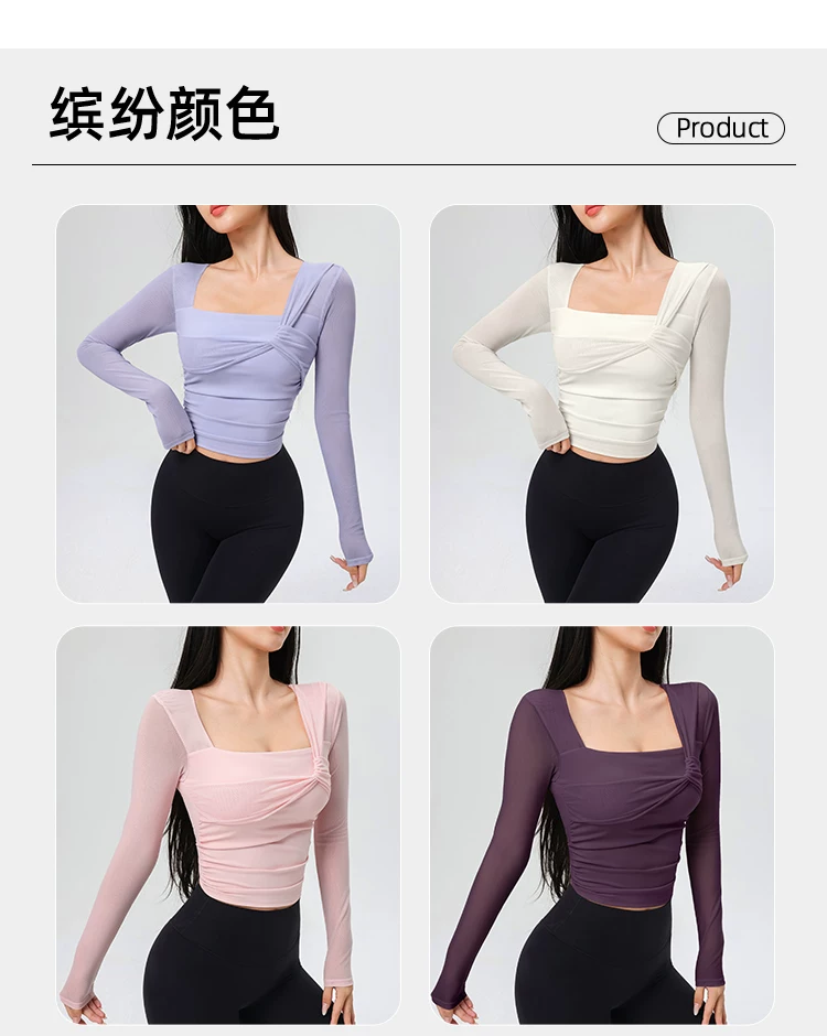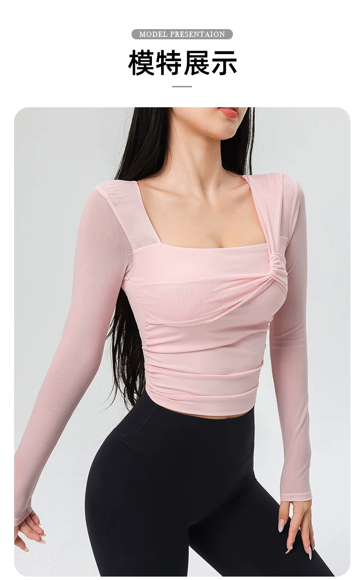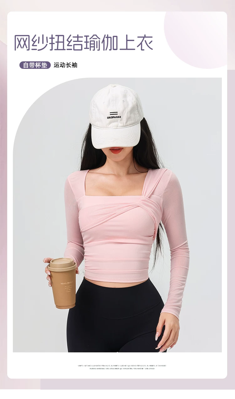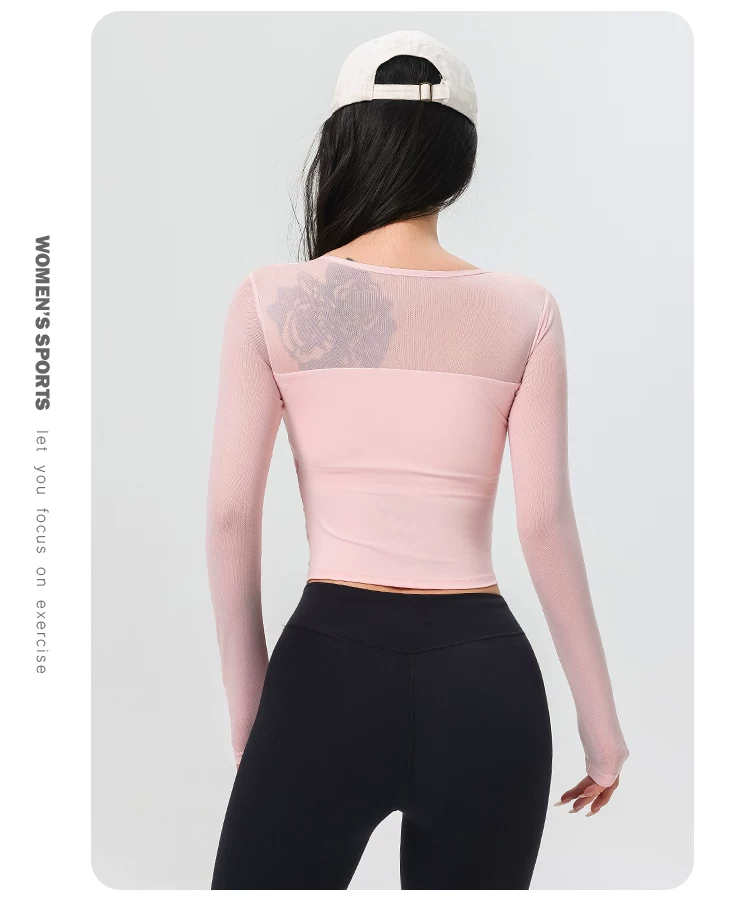 - Đồ tập yoga cho nữ có đệm ngực, áo thể thao lưới đẹp, quần áo tập Pilates dài tay ôm sát cho mùa xuân