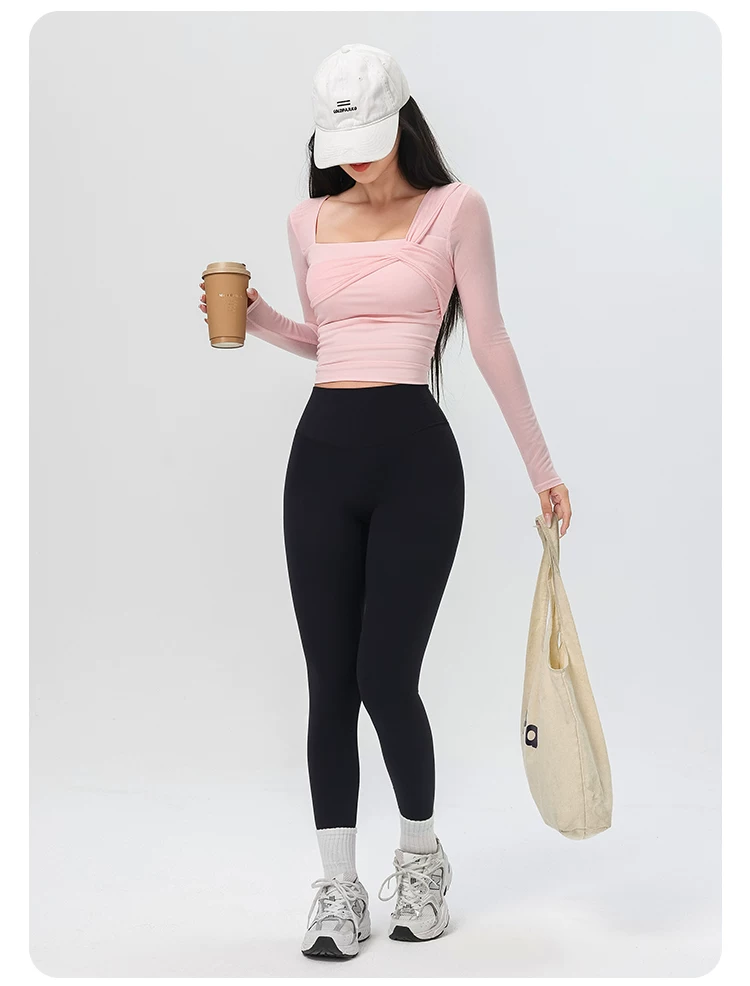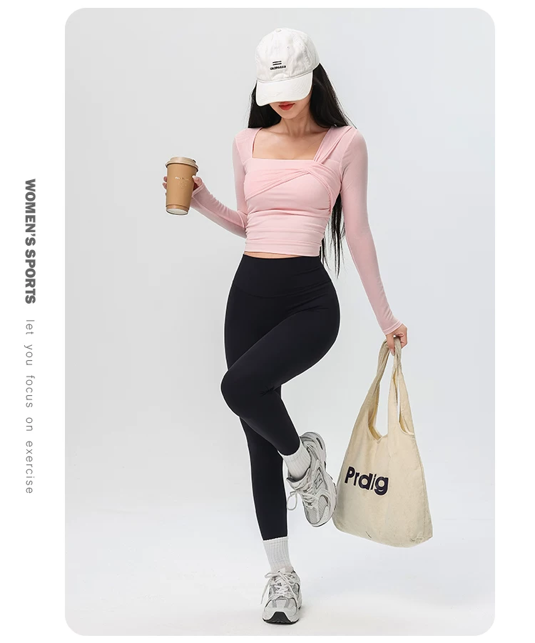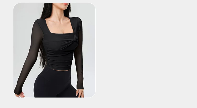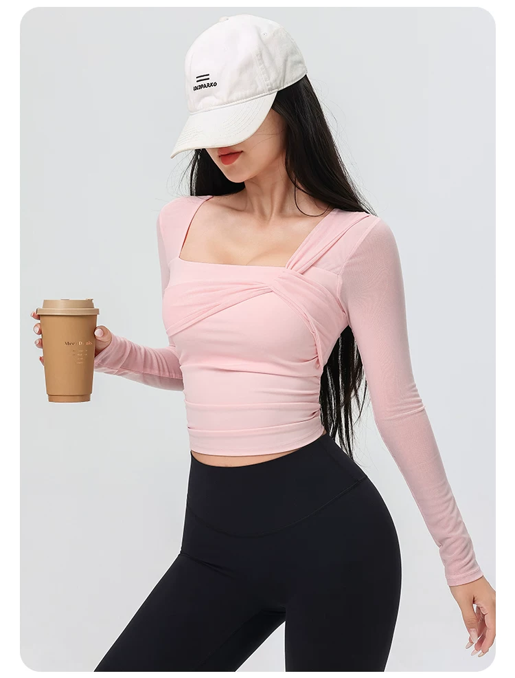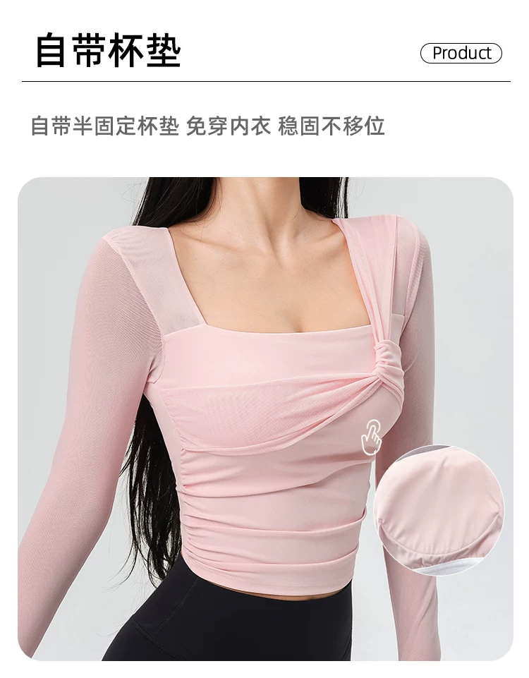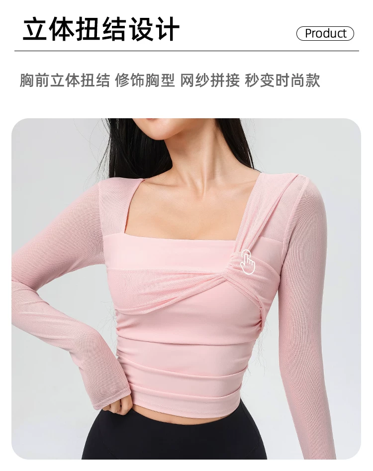 - Đồ tập yoga cho nữ có đệm ngực, áo thể thao lưới đẹp, quần áo tập Pilates dài tay ôm sát cho mùa xuân