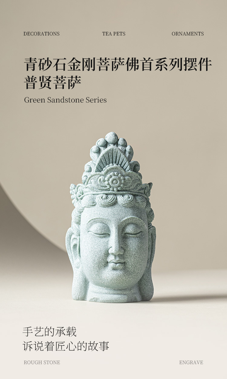 - Đồ trang trí đầu Phật Bồ tát Phổ Hiền bằng đá xanh