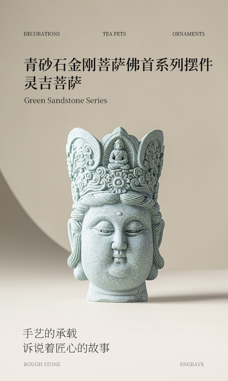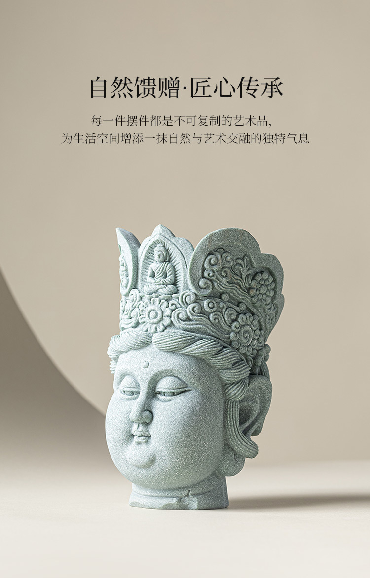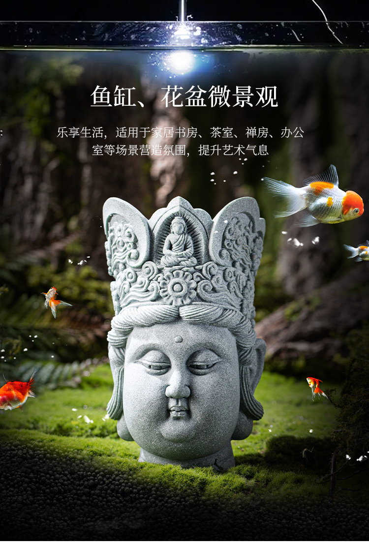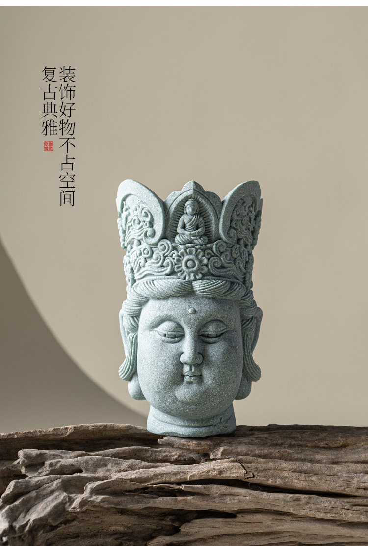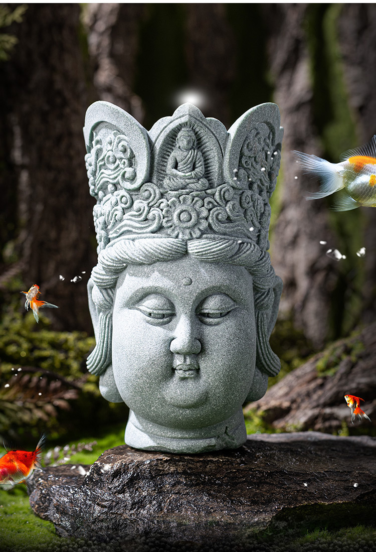 - Đồ trang trí đầu Phật sáng tạo bằng đá sa thạch xanh Lingji Bồ tát mới phong cảnh bể cá kiểu Trung Quốc trang trí nhân vật lối vào nhà