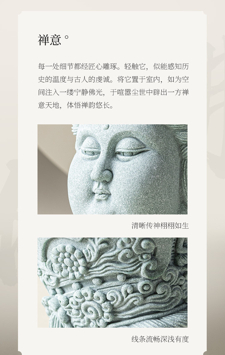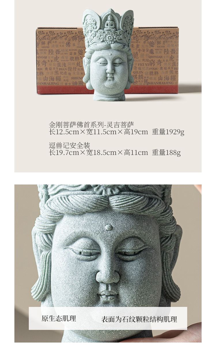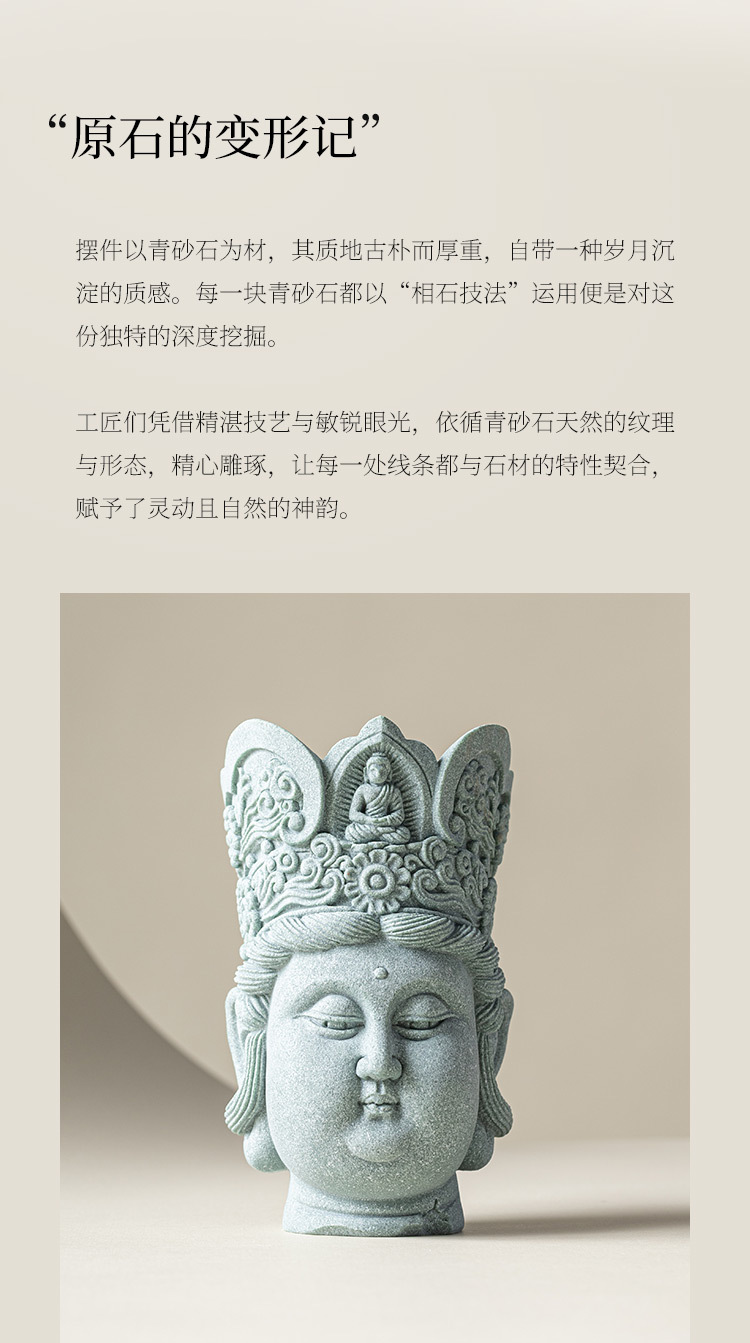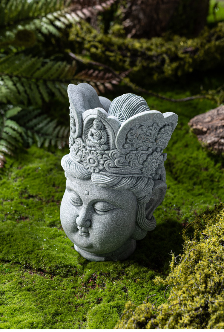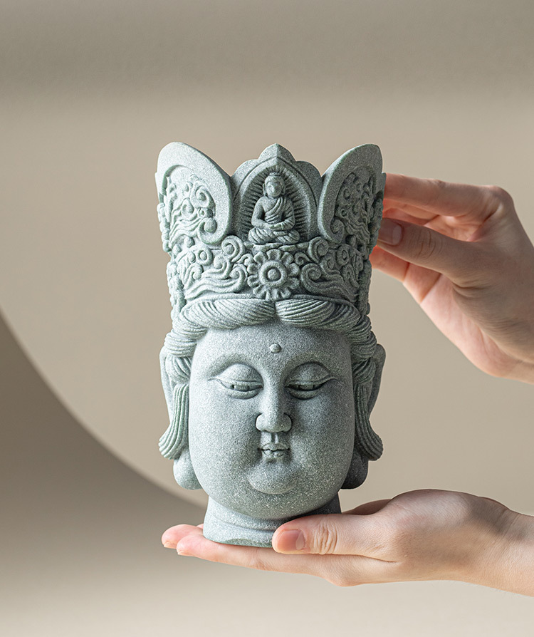 - Đồ trang trí đầu Phật sáng tạo bằng đá sa thạch xanh Lingji Bồ tát mới phong cảnh bể cá kiểu Trung Quốc trang trí nhân vật lối vào nhà