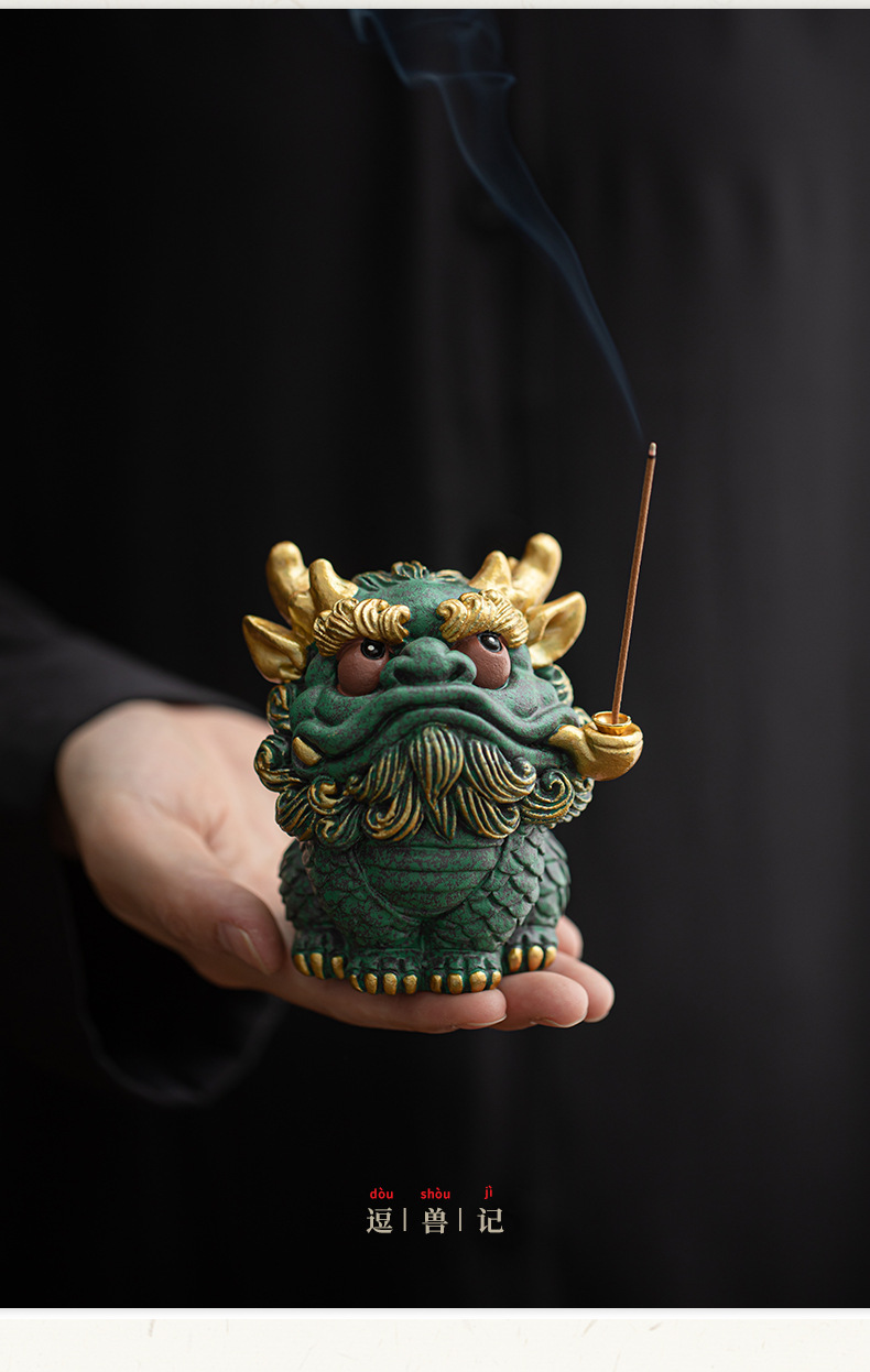 Đồ trang trí giá đỡ hương thơm bằng đá sa thạch xanh sáng tạo chữa cháy ngọn lửa Kirin