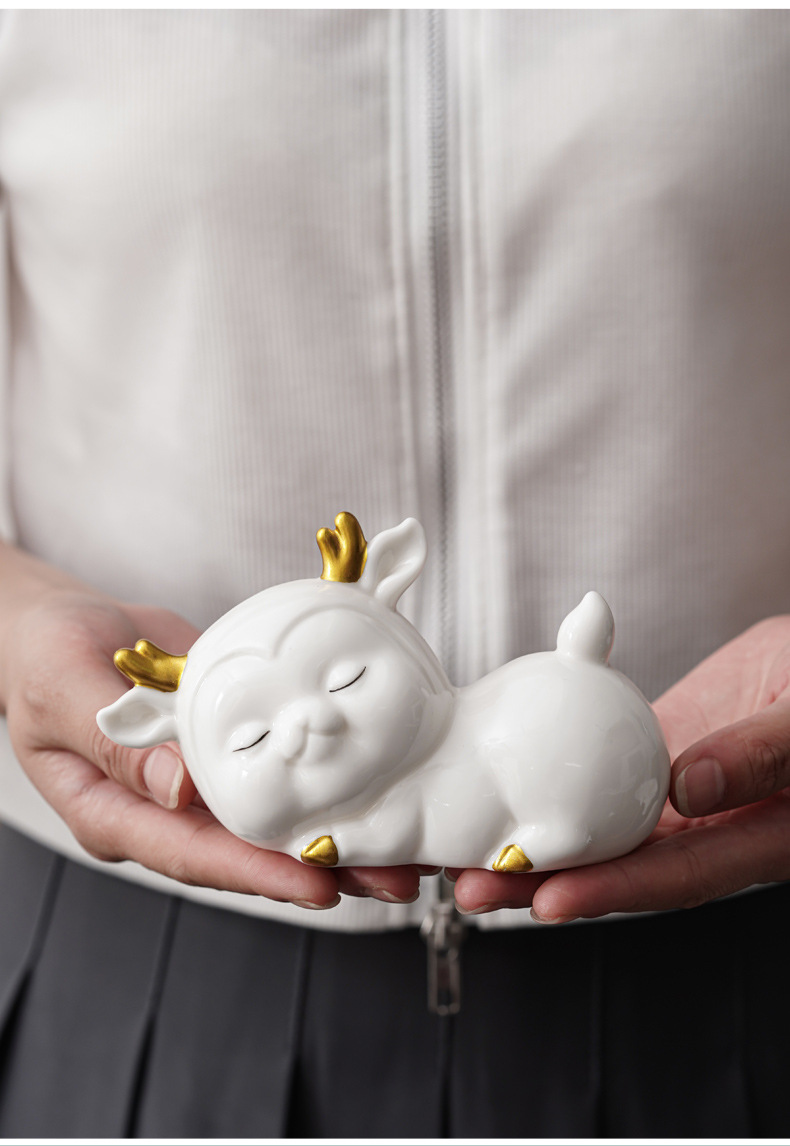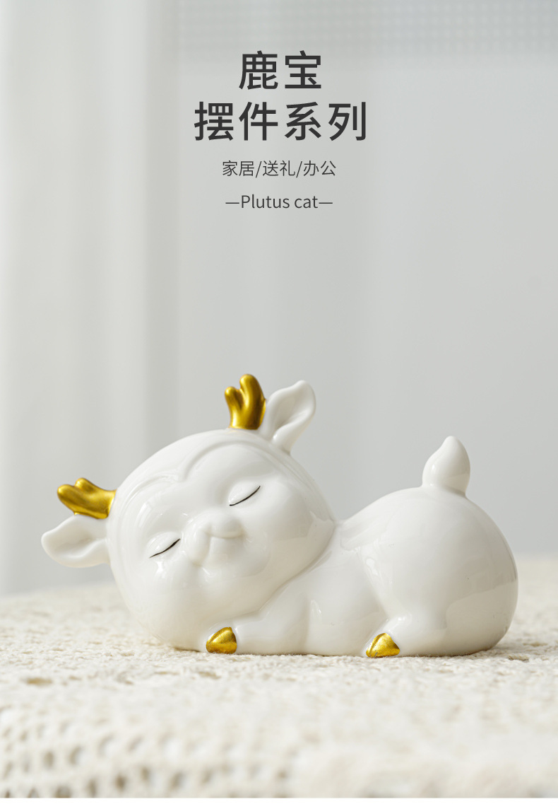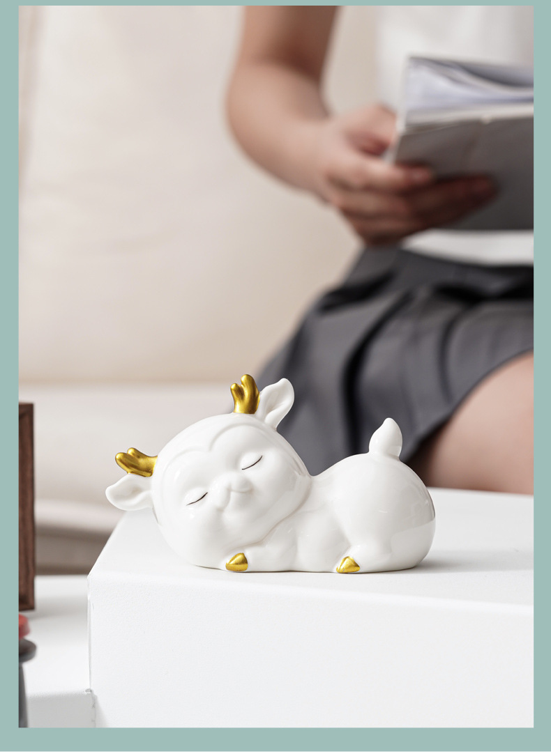 - Đồ trang trí gốm sứ sáng tạo kho báu hươu bàn làm việc lối vào phòng khách gia dụng hoạt hình hươu đồ thủ công trang trí xe hơi