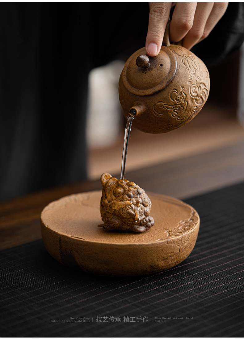 - Đồ trang trí khay trà cóc vàng sáng tạo gốm dày tráng men nước sốt đồ chơi trà không pha mèo