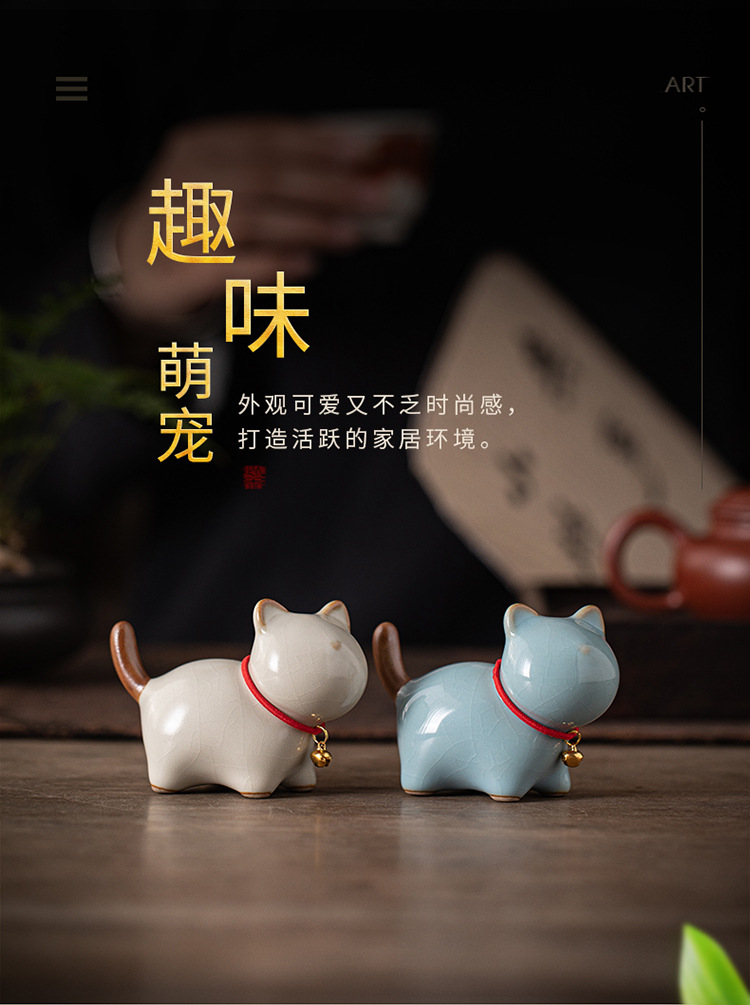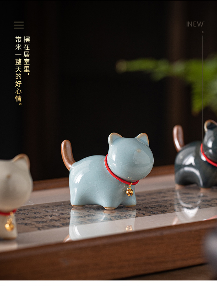 Đồ trang trí mèo con may mắn gốm sứ đáng yêu chó con thú cưng trà bể cá vi phong cảnh phụ kiện cảnh quan phòng học giá đỡ bút