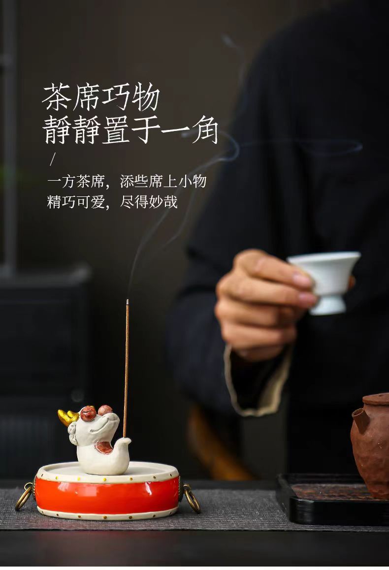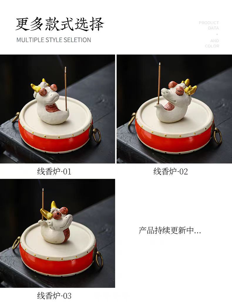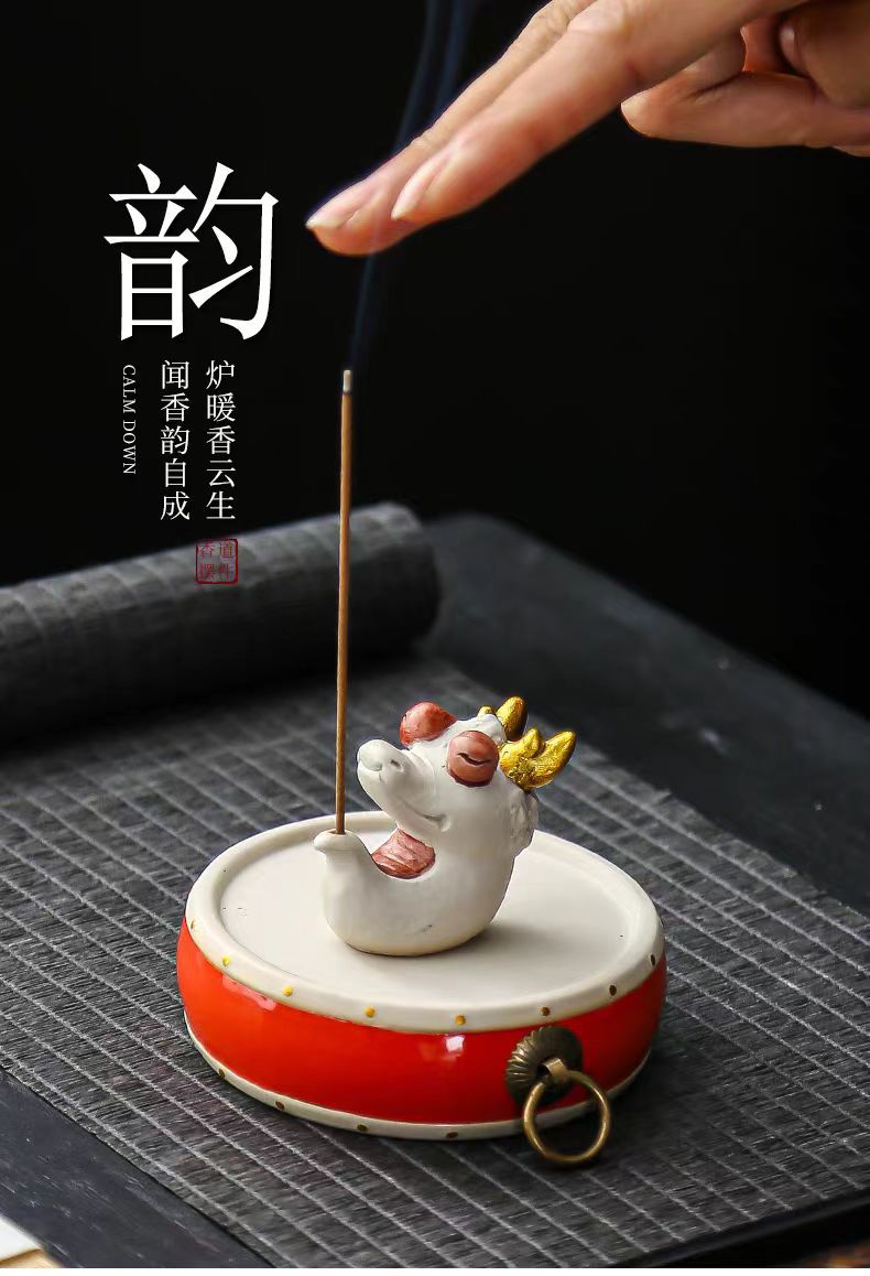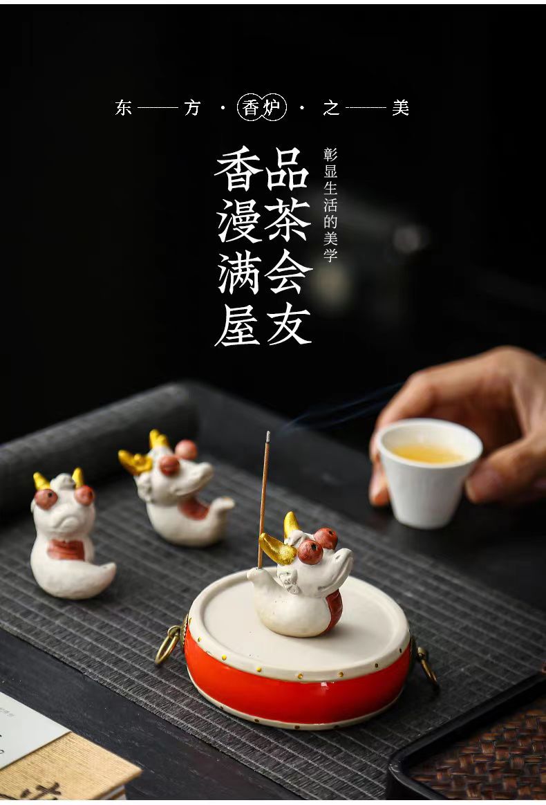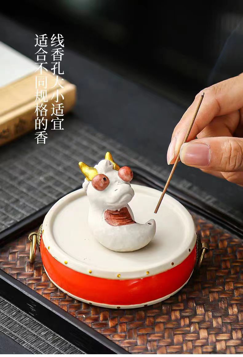 - Đồ trang trí năm rồng gốm sứ rồng trống cắm hương Dây gia dụng Lư hương nằm Lư hương gỗ đàn hương khay hương dây trong nhà đáy