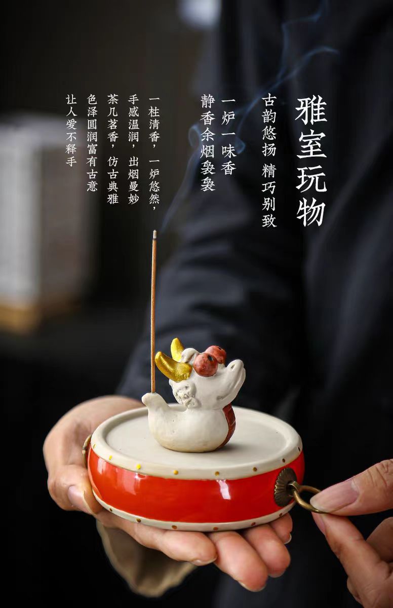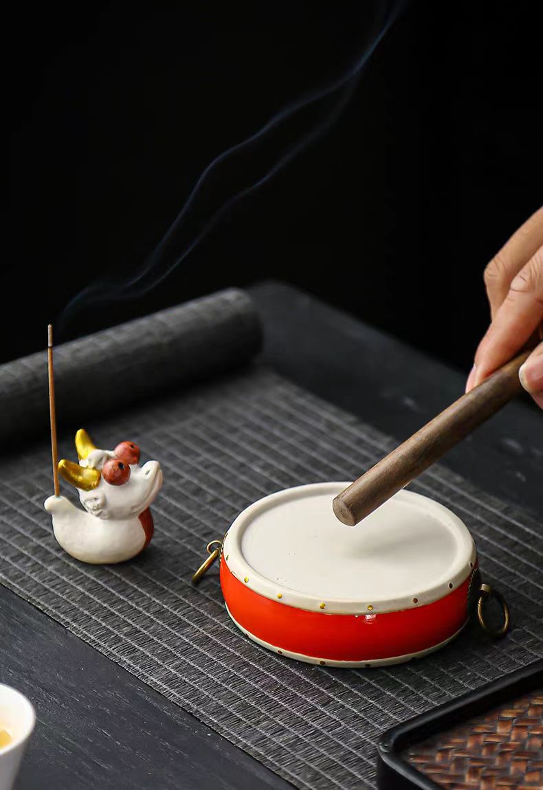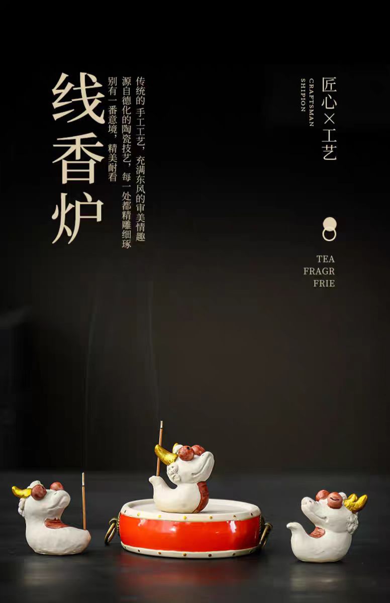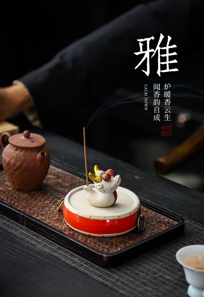 - Đồ trang trí năm rồng gốm sứ rồng trống cắm hương Dây gia dụng Lư hương nằm Lư hương gỗ đàn hương khay hương dây trong nhà đáy