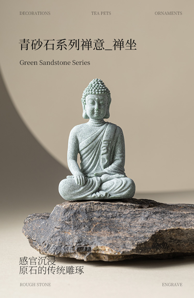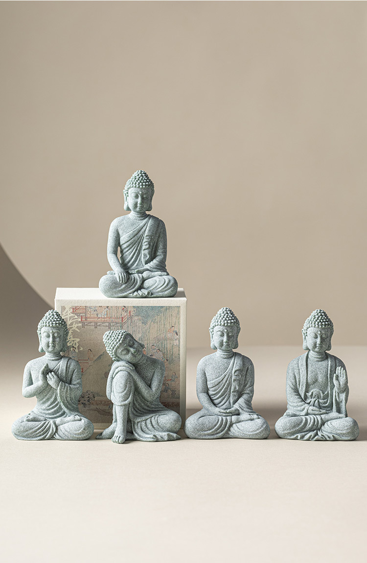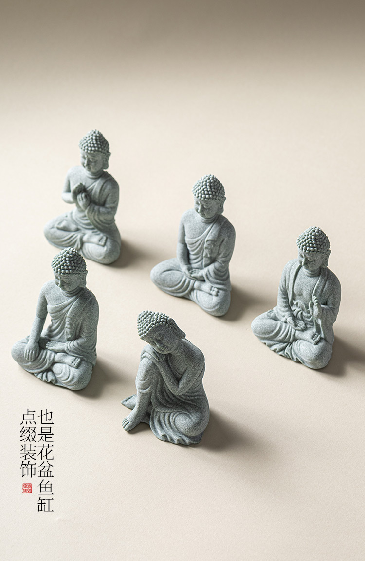 - Đồ trang trí nhỏ của tượng Phật ngồi năm vị Phật bằng đá xanh