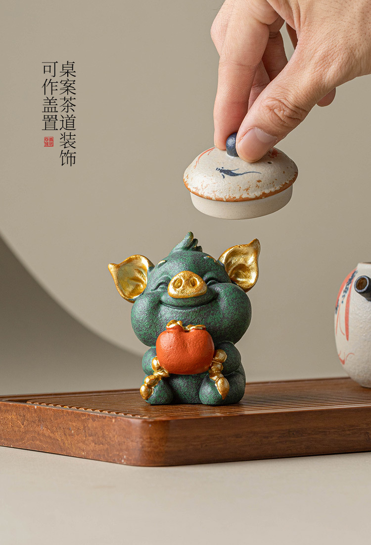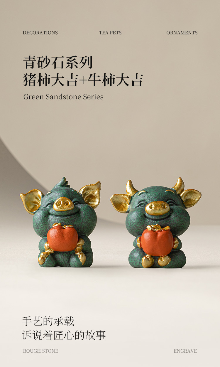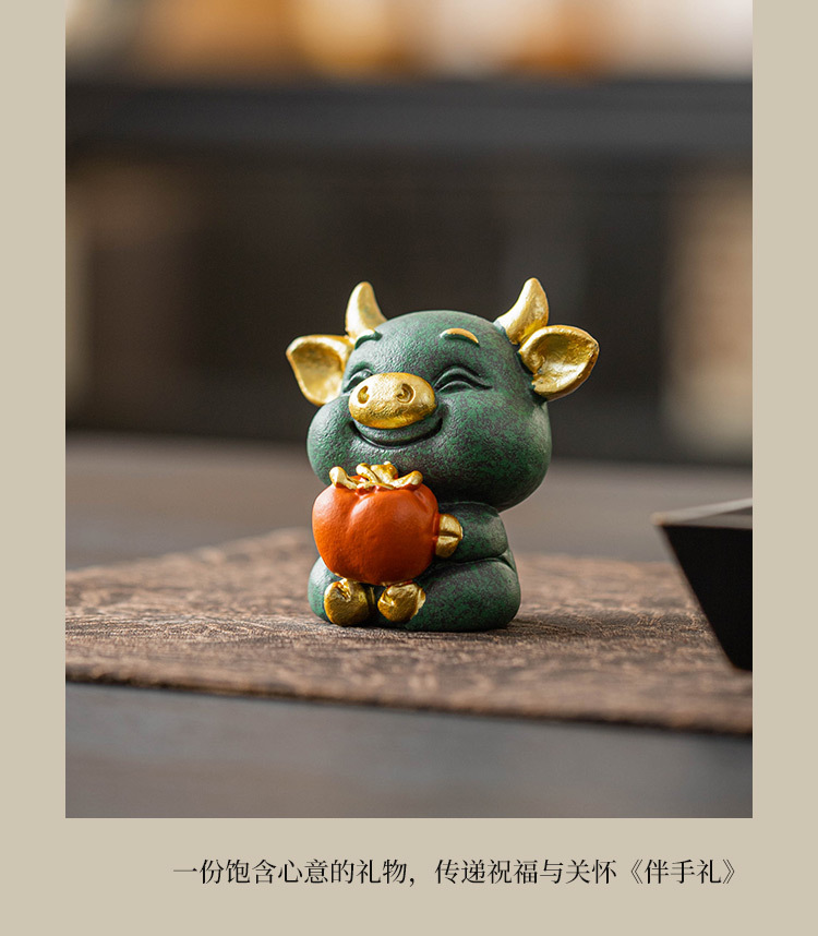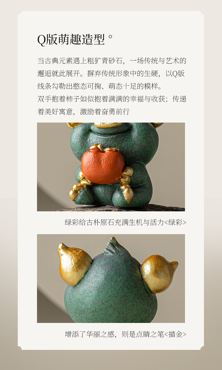 - Đồ trang trí nhỏ để bàn bằng vàng đầy màu sắc, đồ trang trí nhà sáng tạo bằng đá sa thạch xanh, đồ trang trí thú cưng trà quốc gia mới của Trung Quốc