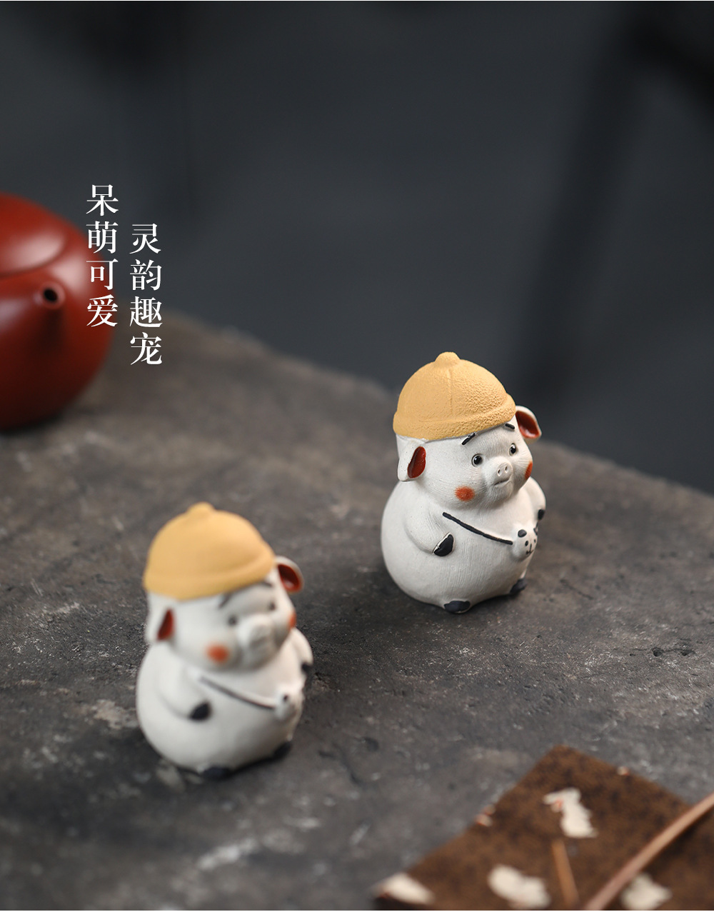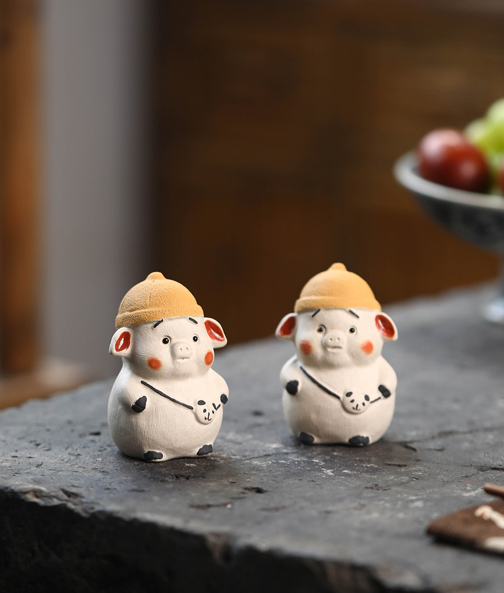 Đồ trang trí nhỏ heo con Thú cưng trà tử sa làm bằng tay 12 cung hoàng đạo heo chơi hoạt hình dễ thương dễ thương bàn trà đạo Bộ trà