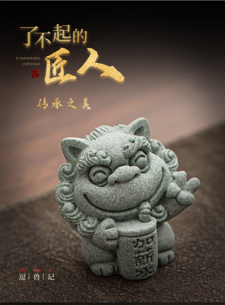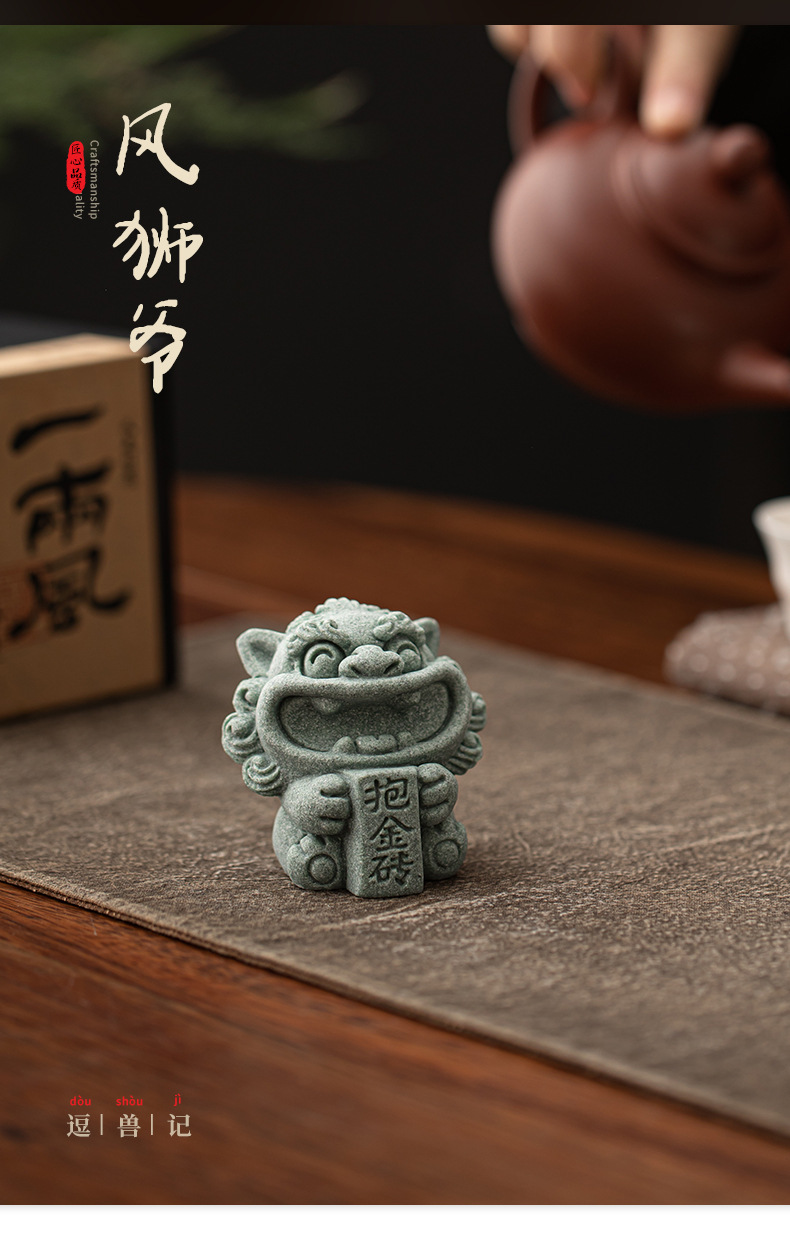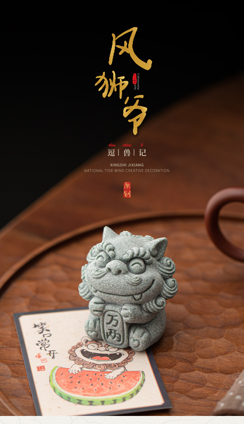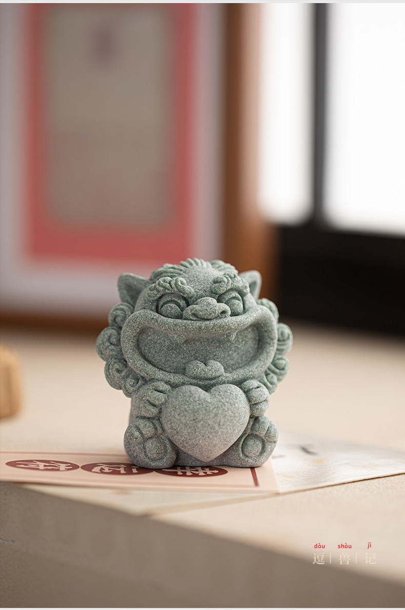Đồ trang trí nhỏ trang trí mặt bàn văn phòng nhà sư tử sáng tạo phong cách cát đá xanh
