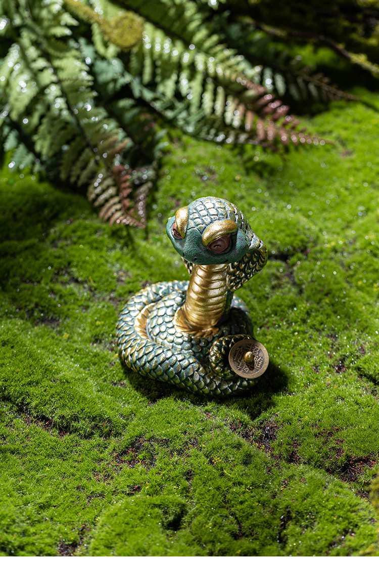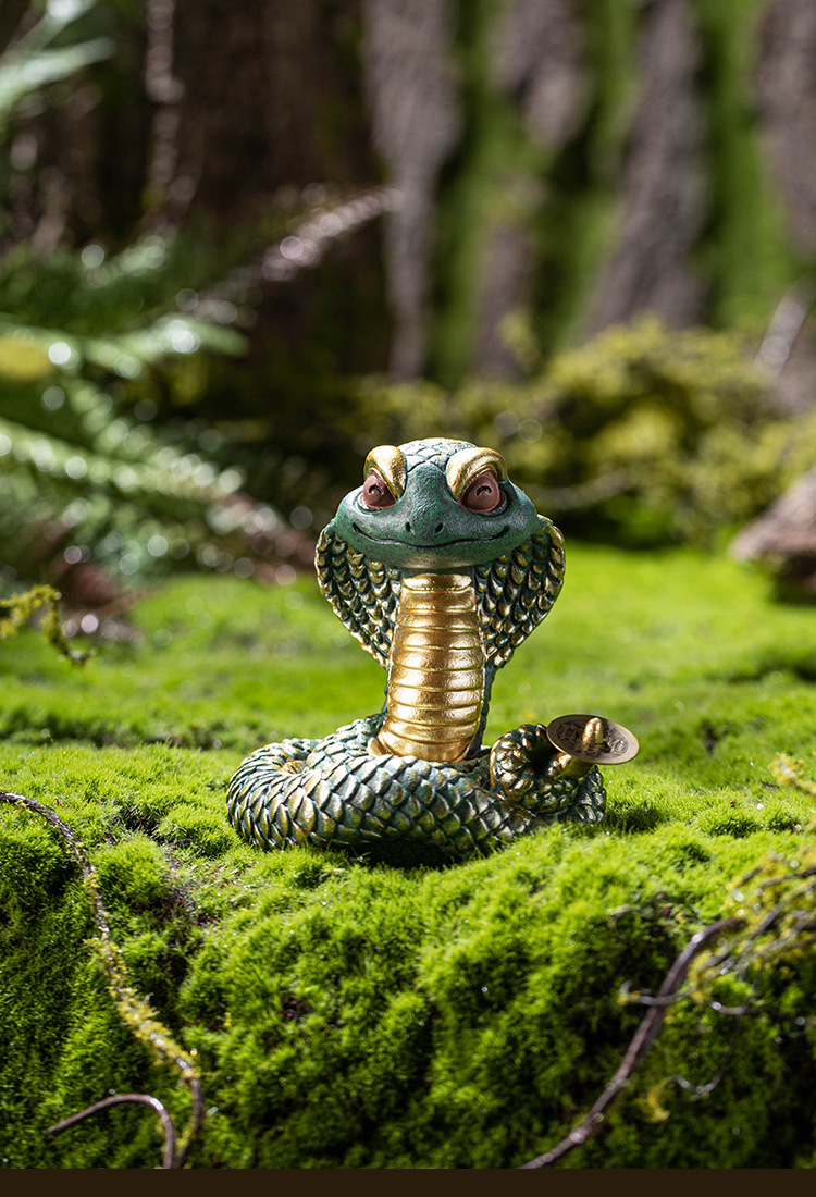 Đồ trang trí sáng tạo rắn vua kính đá xanh, đồ trang trí nhỏ để bàn gia dụng, đồ trang trí điêu khắc đá vi cảnh cây cảnh, một chiếc